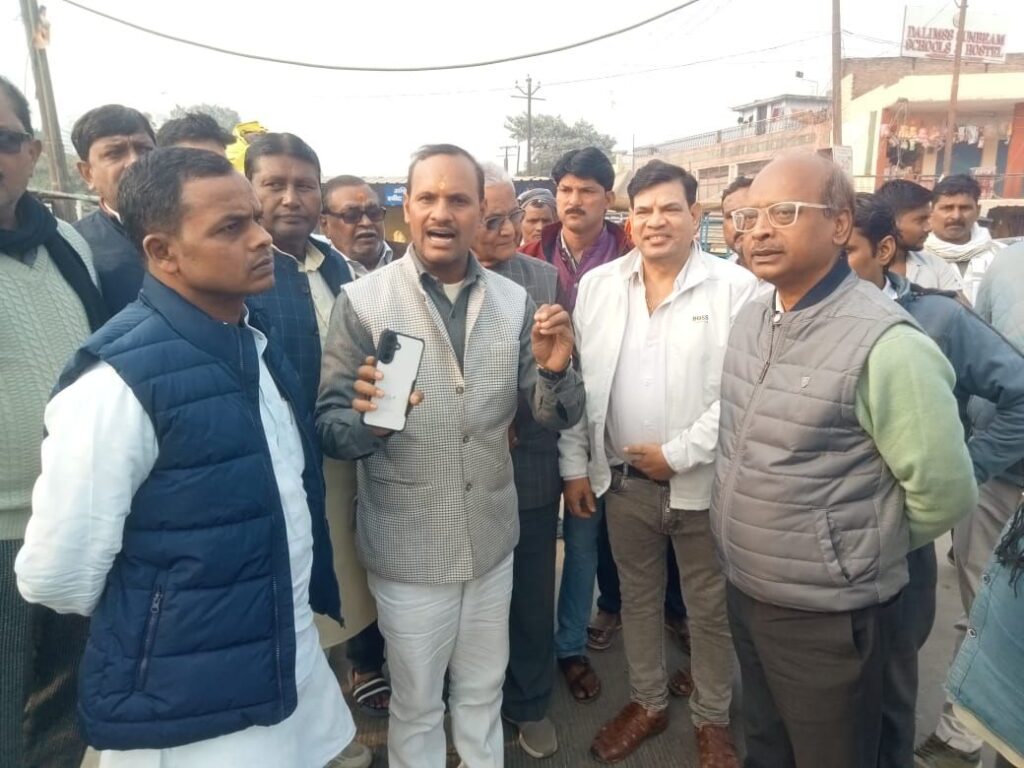 विधायक डॉक्टर सुनील पटेल ने रोहनिया बाजार के व्यापारियों के साथ मौके पर पहुंचे पीडब्ल्यूडी विभाग के अधिकारियों से किया वार्ता