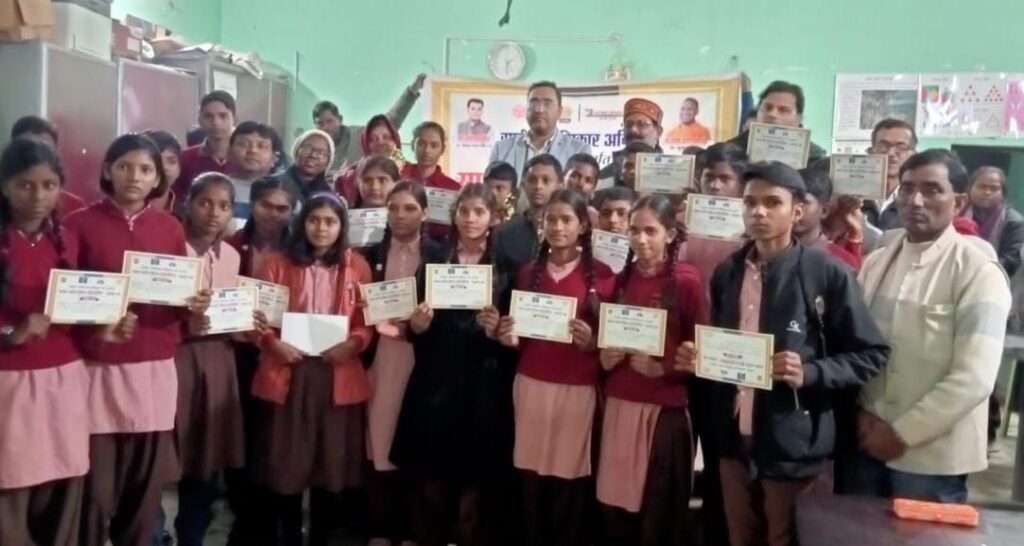 वाराणसी/-आराजी लाइन क्षेत्र के कचनार स्थित ब्लॉक संसाधन केंद्र पर खंड शिक्षा अधिकारी शशिकांत श्रीवास्तव की उपस्थिति में बुधवार को राष्ट्रीय अविष्कार अभियान के तहत ब्लॉक स्तरीय क्विज प्रतियोगिता का दो चरणों में आयोजन किया गया।प्रथम चरण में प्रतियोगिता में 51 विद्यालयों से 153 बच्चों द्वारा प्रतिभाग किया गया।जिसमे दूसरे चरण हेतु 25 प्रतिभागियों ने सफलता हासिल की।दूसरे चरण की प्रतियोगिता में 25 प्रतिभागियों को 5 -5 के समूह में बटाकर पुनः क्विज प्रतियोगिता करायी गई।जिसमे अनूप कुमार पटेल सी एस लोहरापुर,सोनू यूपीएस शाहंशाहपुर,अंशु विश्वकर्मा सी एस भतसार,तृषा सिंह सी एस लोहरापुर,कंचन मौर्या सी एस दयापुर द्वारा प्रथम स्थान प्राप्त किया गया।