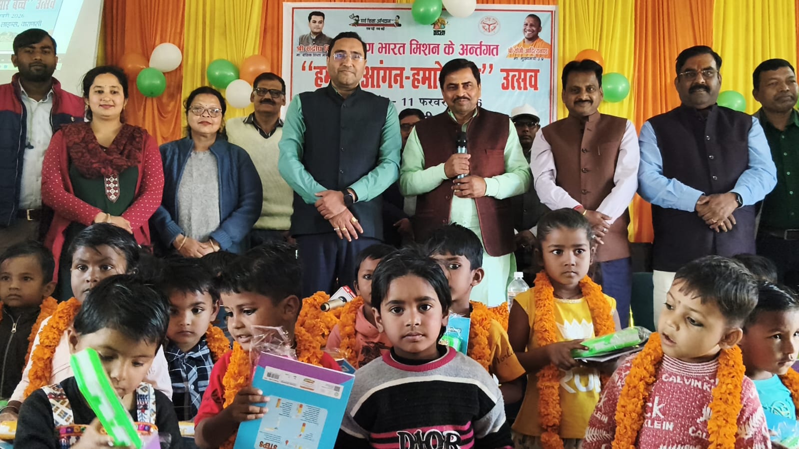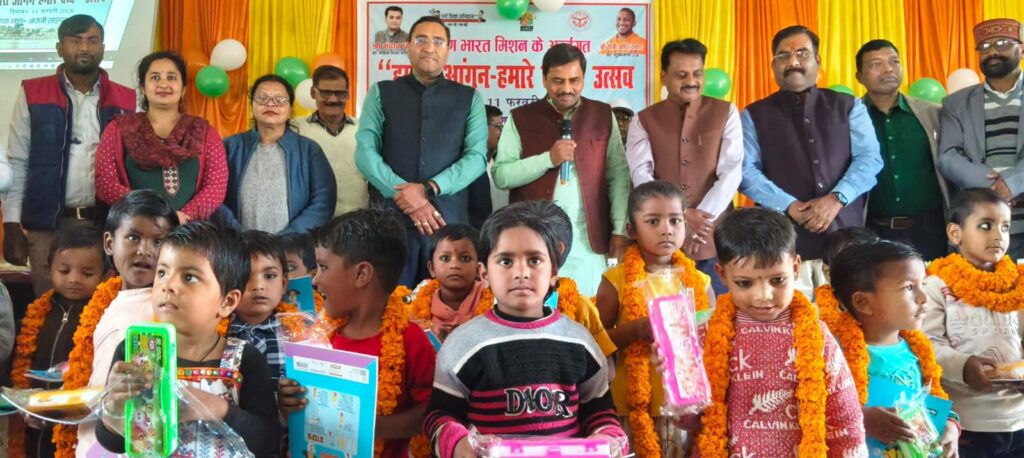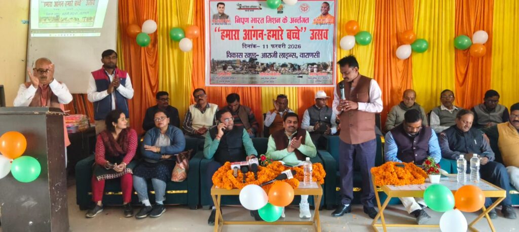 इस अभियान के तहत योगी सरकार प्रदेश में प्री-प्राइमरी को मजबूत करने का लक्ष्य रखती है।प्राप्त जानकारी के अनुसार आराजी लाइन विकास खण्ड के अंतर्गत बीआरसी आराजी लाइन पर हमारा आंगन-हमारे बच्चे उत्सव कार्यक्रम का हुआ भव्य आयोजन किया गया।कार्यक्रम का उद्देश्य आंगनबाड़ी केंद्रों से जुड़े बच्चों के सर्वांगीण विकास,प्रारम्भिक शिक्षा को बढ़ावा देने तथा अभिभावकों को जागरूक करना रहा इस अवसर पर मुख्य अतिथि के रूप में डॉ महेन्द्र सिंह पटेल,बीडीओ आराजी लाइन सुरेंद्र सिंह यादव,खण्ड शिक्षा अधिकारी आराजी लाइन शशिकांत श्रीवास्तव उपस्थित रहे।उन्होंने कार्यक्रम को संबोधित करते हुए कहा कि निपुण भारत मिशन के माध्यम से बच्चों की बुनियादी शिक्षा को मजबूत बनाया जा रहा है, जिससे उनका भविष्य उज्ज्वल होगा।उन्होंने आंगनबाड़ी कार्यकत्रियों के कार्यों की सराहना करते हुए कहा कि उनकी भूमिका बच्चों की नींव मजबूत करने में अत्यंत महत्वपूर्ण है कार्यक्रम में बच्चों द्वारा सांस्कृतिक प्रस्तुतियाँ दी गईं तथा शिक्षा से संबंधित गतिविधियाँ आयोजित की गईं इस दौरान विभागीय अधिकारी आंगनबाड़ी कार्य करता अभिभावक एवं क्षेत्रीय गणमान्य लोग मौजूद रहे।