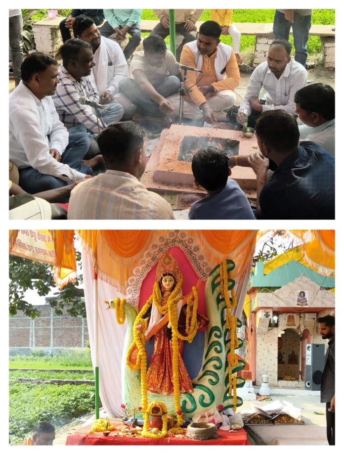 वाराणसी/-राजातालाब थाना क्षेत्र के ग्राम पंचायत असवारी में जय माँ सरस्वती पूजनोत्सव समिति द्वारा डीह बाबा मंदिर पर शुक्रवार को विद्या की देवी माँ सरस्वती का पूजनोत्सव कार्यक्रम धूमधाम से सम्पन्न हुआ।प्रतिवर्ष की भांति इस वर्ष भी समस्त ग्राम वासियों के सामूहिक सहयोग से माँ शारदा का पूजन और विशाल भंडारे का भव्य आयोजन किया गया जिसमे हजारो भक्तो ने माँ के दरबार मे हाजिरी लगाते हुए प्रसाद ग्रहण किया।