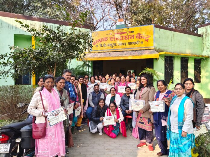 वाराणसी/-बीएसए अनुराग श्रीवास्तव के दिशा निर्देशन एवं खण्ड शिक्षा अधिकार पंकज कुमार,जिला समन्वयक बालिका शिक्षा श्रीमती अमृता चौहान के कुशल नेतृत्व में स्पेशल प्रोजेक्ट फॉर इक्विटी के अंतर्गत मीना मंच तथा पावर एंजिल सशक्तिकरण एवं नेतृत्व क्षमता तथा जीवन कौशल शिक्षा तथा सेल्फ एस्टीम के लिए बीआरसी हरहुआ पर कार्यशाला सम्पन्न हुआ।प्रशिक्षण में मास्टर ट्रेनर राजीव सिंह व रत्नेश कुमारी पांडेय ने प्रगति के पंख,आधा फुल कॉमिक सीरीज,अरमान माॅड्यूल,सेल्फ डिफेंस,प्रशिक्षण,सामाजिक व्यवहार परिवर्तन,मीना मंच का गठन,टूल दस,वीरांगना पोर्टल अरमान माड्यूल की चर्चा की।कार्यशाला में हरहुआ ब्लाक के कुल चालीस सुगमकर्ता शामिल रहे।कार्यशाला के समापन पर खंड शिक्षा अधिकारी हरहुआ पंकज कुमार ने प्रशिक्षण प्रतिभागियों को प्रमाण-पत्र देकर सम्मानित किया।