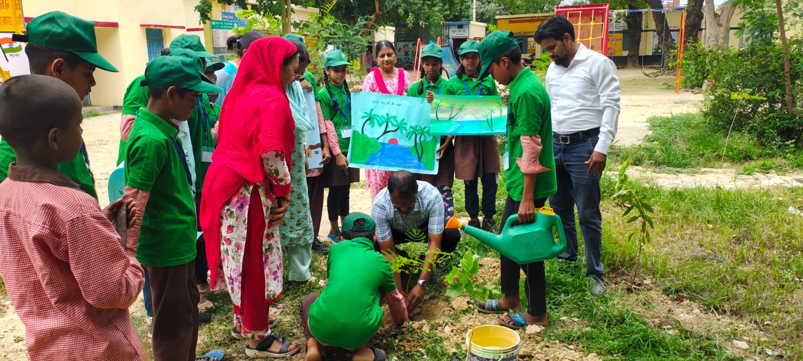 वाराणसी/-एक पेड़ मां के नाम कार्यक्रम के अंतर्गत विकास खण्ड हरहुआ के विद्यालयों में बृहद रूप से पौधरोपण का कार्यक्रम सम्पन्न हुआ।विकास खंड हरहुआ के 127 विद्यालयों में वृक्षारोपण का कार्यक्रम आयोजित हुआ जिसमें अब तक लक्ष्य के सापेक्ष कल 1000 पेड़ लगाए गए।इसी क्रम में खंड शिक्षा अधिकारी हरहुआ पंकज कुमार द्वारा प्राथमिक विद्यालय कृष्णापुर चौका व कंपोजिट विद्यालय बेलवरिया में पौधरोपण किया गया।कार्यक्रम में मुख्य रूप से प्रधानाध्यापिका बेबी फरीदा व कुसुम यादव सहायक अध्यापिका प्रीति सिंह,ज्योति सिंह,अरुणा देवी सहित हरियाली दूत बने बच्चे शामिल रहे।प्राथमिक विद्यालय दादुपुर,मुर्दहा,बेनीपुर,अनौरा,चक्का,कम्पोजिट विद्यालय भटौली,करोमा,हरहुआ सहित विद्यालयों में शिक्षक व बच्चों ने पौधरोपण किया।