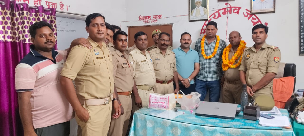 विदाई समारो में उप निरीक्षक अमित सिंह,उप निरीक्षक कैलाश नाथ,उप निरीक्षक दिनेश सिंह,कांस्टेबल धनन्जय सिंह,चंद्रदीप मौर्या,रामविलास यादव,पत्रकार एस के श्रीवास्तव विकास,उपेंद्र उपाध्याय,शुभम शर्मा,आदर्श वर्मा,विशाल गुप्ता, अजय गुप्ता इत्यादि लोगो ने माला पहनाकर मिठाई खिलाकर गले लगाते हुए शुभकामना देकर विदाई किया।