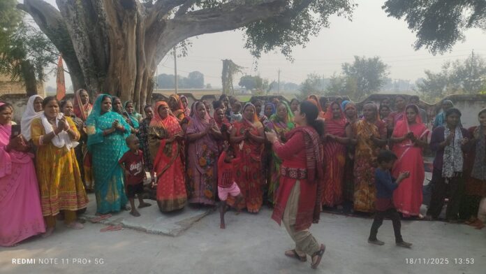 वाराणसी/-जन विकास समिति मुर्दहा हरहुआ वाराणसी द्वारा मंगलवार को लिंग समानता और न्याय पर महिलाओं व किशोरियों का क्षमता संवर्धन विषय पर एक दिवसीय प्रशिक्षण कार्यक्रम हसनपुर स्थित चौरा माता मंदिर पर सम्पन्न हुआ।कार्यक्रम में ग्राम पंचायत हसनपुर के अंतर्गत विरावकोट,हसनपुर,शेरवानीपुर,भीटी गाँवों की कुल सौ महिलाओं एवं किशोरियों ने सक्रिय रूप से भाग लिया।कार्यक्रम की मुख्य प्रशिक्षक रेखा उपाध्याय ने प्रतिभागियों के साथ चार्ट पेपर लेखन गतिविधि कराई तथा परिवार और समाज से जुड़े रिश्तों,उनके महत्व और लिंग,न्याय की अवधारणा पर विस्तार से चर्चा की।उन्होंने प्रतिभागियों को उनके अधिकारों,कर्तव्यों और समानता की जरूरत के बारे में प्रभावी ढंग से जागरूक किया।कार्यक्रम को सफल बनाने में एफएफ इंद्रजीत यादव,नीतू सुरेखा,आशा,आंगनवाड़ी का योगदान रहा।