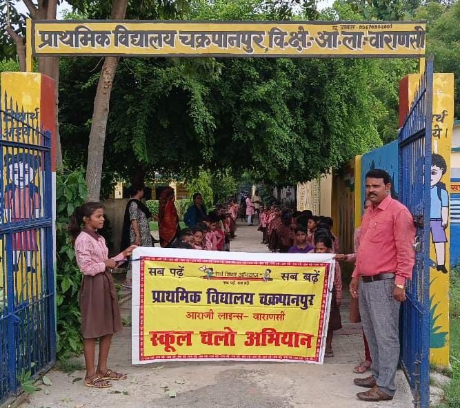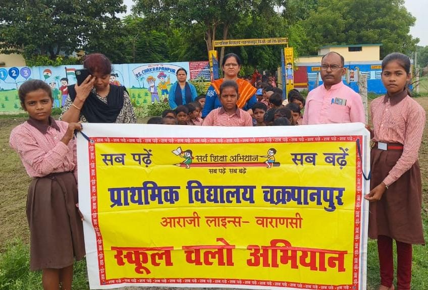 वाराणसी/-आराजी लाइन विकास खण्ड के प्राथमिक विद्यालय चक्रपानपुर मिर्जामुराद के बच्चों ने शनिवार को स्कूल चलो अभियान के तहत प्रभात फेरी निकालकर गांव व बस्तियों में भ्रमण कर शिक्षा के प्रति आमजन को जागरूक किया।रैली में शामिल बच्चे ‘बेटा-बेटी एक समान-शिक्षा पर है सबका अधिकार, पढ़ी-लिखी लड़की रोशनी है घर की,हिंदु-मुस्लिम सिख-इसाई-मिलकर के सब करें पढ़ाई,आधी रोटी खाएंगे,स्कूल पढ़ने जाएंगे जैसे नारे लगाते हुए जा रहे थे।