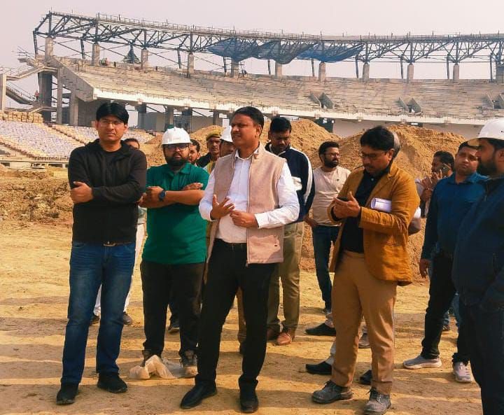 वाराणसी/-मंडलायुक्त एस राजलिंगम ने जंसा क्षेत्र के गंजारी स्थित अंतर्राष्ट्रीय क्रिकेट स्टेडियम के निर्माणाधीन कार्यों का शुक्रवार को निरीक्षण करते हुए वर्तमान प्रगति का जायजा लिया।निरीक्षण के दौरान बताया गया कि परियोजना का 75% कार्य पूरा हो चुका है।बारिश के वजह से रुके कार्यों को शुरू किया जा चुका है