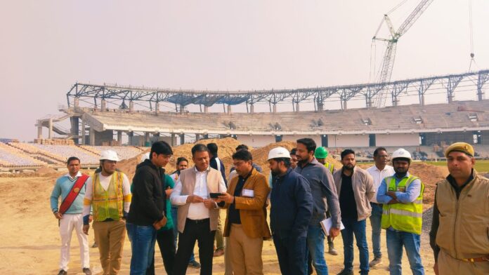 जिसको आगामी मार्च-अप्रैल के मध्य तक पूरा कर लिया जायेगा।मंडलायुक्त द्वारा निरीक्षण के दौरान निर्माण कार्य में आ रही चुनौतियों और बाधाओं की भी जानकारी ली गयी तथा उक्त के सम्बन्ध में संबंधित अधिकारियों को समस्याओं के त्वरित समाधान के लिए आवश्यक निर्देश भी दिए।मंडलायुक्त द्वारा अन्तर्राष्ट्रीय क्रिकेट स्टेडियम को जोड़ने हेतु मार्गों हरसोस-सुईचक-गंगापुर मार्ग,रोहनियां-गंगापुर मार्ग के चौड़ीकरण एवं सुदृढ़ीकरण कार्य की प्रगति का भी निरीक्षण किया जिसके संबंध में अधिशासी अभियन्ता निर्माण खण्ड-1 लोनिवि आशुतोष कुमार सिंह द्वारा बताया गया
