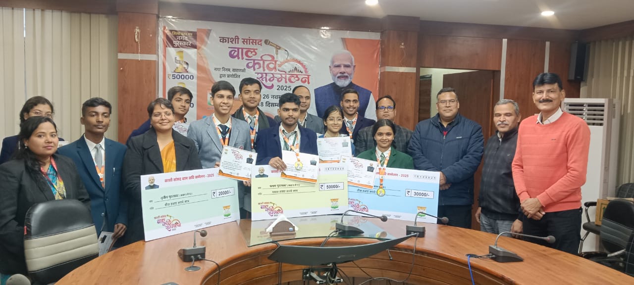 वाराणसी/-वाराणसी पब्लिक स्कूल राजातालाब की कक्षा 12वीं (जीवविज्ञान वर्ग) की छात्रा दिव्यांका सिंह ने बाल कवि सम्मेलन में प्रथम पुरस्कार प्राप्त कर विद्यालय,परिवार एवं जनपद का नाम गौरवान्वित किया है।इस प्रतिष्ठित प्रतियोगिता में उत्कृष्ट काव्य प्रस्तुति के लिए दिव्यांका सिंह को ₹30,000 (तीस हजार रुपये) की पुरस्कार राशि से सम्मानित किया गया। यह सम्मान 19 दिसम्बर 2025 को आयुक्त कार्यालय वाराणसी में उत्तर प्रदेश सरकार द्वारा प्रदान किया गया।विद्यालय