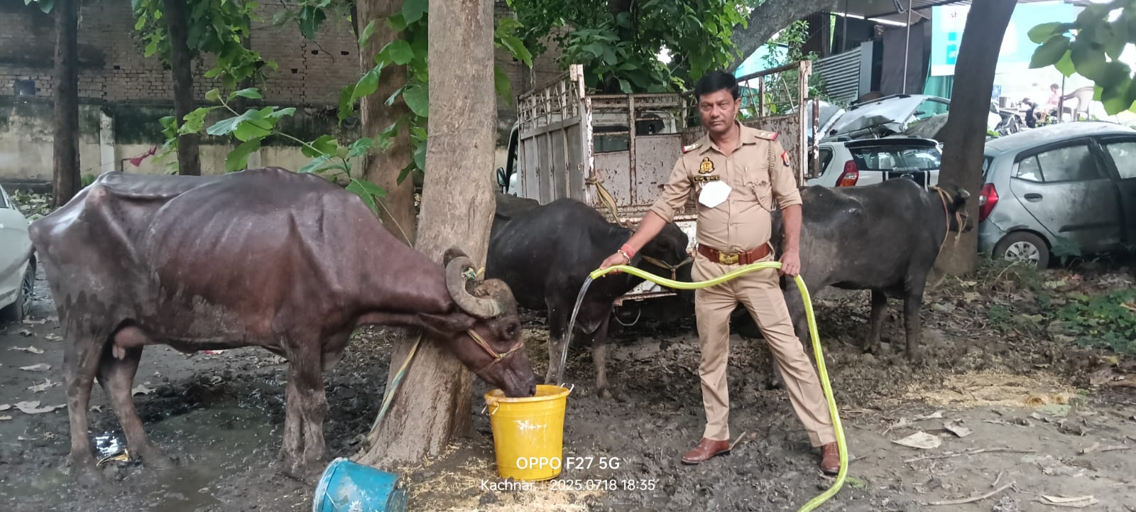 राजातालाब पुलिस ने आरोपियों के खिलाफ पशु क्रूरता अधिनियम व 325 बीएनएस व एमबी एक्ट के तहत कंटेनर को सीज की कार्यवाही की।पकड़े गए पशुओं को राजातालाब थानाध्यक्ष राजू कुमार ने चारा का बंदोबस्त करते हुए पानी पिलाया।