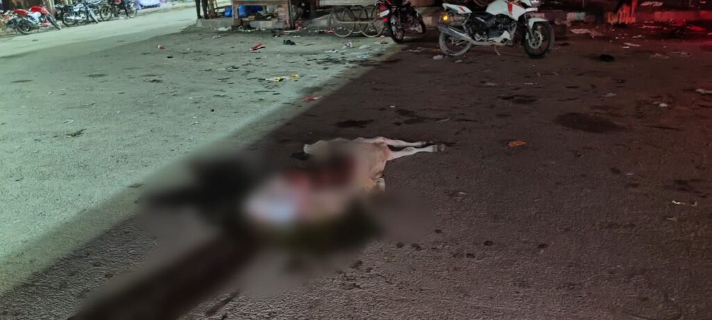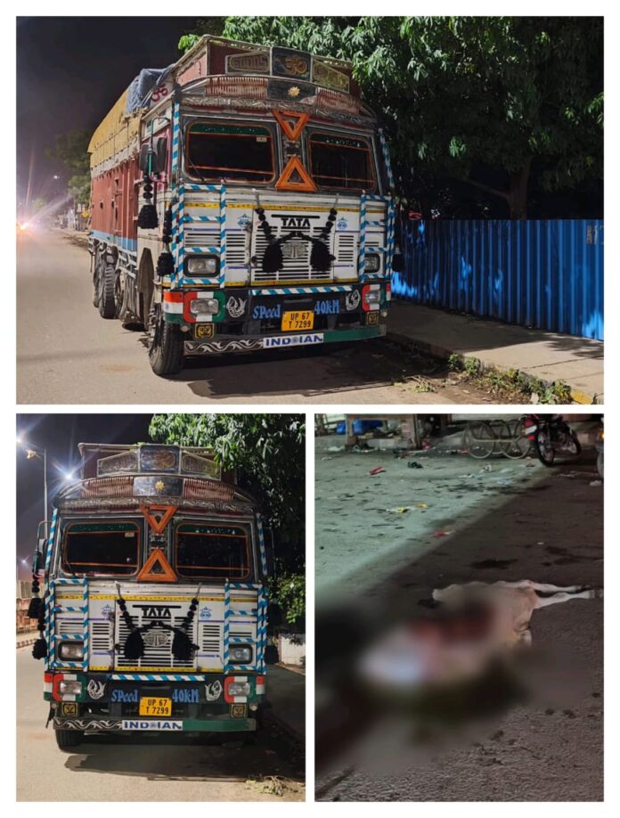वाराणसी/-राजातालाब थाना के कस्बा चौकी राजातालाब ओवरब्रिज के नीचे जंसा मोड़ के समीप सोमवार देर रात सीमेंट लदी ट्रक ने एक बेजुबान गाय को मौत के नींद सुला दिया।