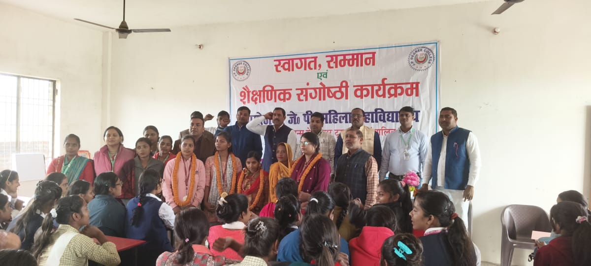 वाराणसी/-जेपी महिला महाविद्यालय अटेसुआ मुर्दहा बाजार वाराणसी में पास आउट बीए एवं बीएससी में प्रथम द्वितीय एवं तृतीय स्थान पाने वाली छात्राओं को मुख्य अतिथि लेफ्टिनेंट कर्नल एस के यादव,एन एसडी टाइम न्यूज़ के मीडिया संयोजक चंद्रभान सिंह तूफानी,फौजी रामप्रवेश यादव ने पुष्पहार व मेडल देकर विजेता खिलाड़ियों का सम्मानित किया।बीए प्रथम में आंचल यादव,द्वितीय खुशी सिंह,तृतीय नेहा पटेल।बी एससी में प्रथम मीनू पटेल द्वितीय रोशनी पटेल,तृतीय स्थान अफरोजखानम ने प्राप्त किया।अतिथियों के सम्मान में गतका खेल का भी आयोजन किया गया जिसमें बालक एवं बालिकाओं द्वारा गतका खेल का प्रदर्शन किया।गतका खेल के मुख्य कोच,प्रदेश चयन कर्ता राम सजीवन सिंह के द्वारा बच्चियों को प्रशिक्षण दिया गया।महाविद्यालय परिवार की तरफ से प्रबंधक महेंद्र प्रसाद,वीरेंद्र प्रसाद,शैलेंद्र प्रसाद,डॉ