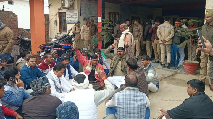वाराणसी/-लोहता थाना क्षेत्र के कोरौता गांव में आराजी नम्बर 1438 डेढ़ विश्वा नवीन परती जमीन पर एक मूर्ति लगाने की सूचना को लेकर पुलिस ने ग्राम प्रधान कोरौता दिनेश पटेल व उनके चार साथी अमरजीत,आशीष,अनीश,रमेश पटेल साथियों को बीती रात हवालात में डाल दिया।सुबह सूचना पाकर थाने पहुंचे प्रधान समर्थको व ब्लाक प्रमुख,भाजपा नेताओं ने पुलिस के खिलाफ जमकर नारे बाजी कर चक्का जाम कर दिया।वहीं एसीपी रोहनिया समेत कई थानों की फोर्स डटी रही।बताया जाता है कि कोरौता गांव में डेढ़ विश्वा नवीन परती जमीन पर प्रधान द्वारा भगवान बुद्ध का मूर्ति लगाया जाना था,जिसका प्रशासन द्वारा विरोध किया जा रहा था।उनका कहना था कि कोई नई मूर्ति स्थापित नहीं होगी।
