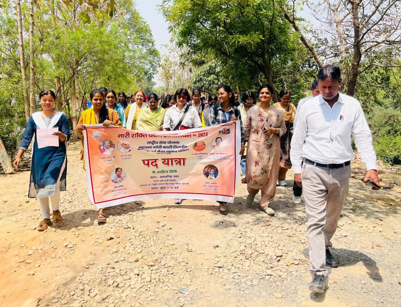 वाराणसी/-राष्ट्रीय सेवा योजना महात्मा गांधी काशी विद्यापीठ गंगापुर एवं भैरव तालाब परिसर वाराणसी द्वारा “नारी शक्ति वंदन अधिनियम–2023” के जन-जागरूकता हेतु आज परिसर में एक भव्य पद यात्रा का आयोजन किया गया।कार्यक्रम का शुभारंभ प्रशासनिक भवन महात्मा गांधी काशी विद्यापीठ महाराजा (डॉ) विभूति नारायण सिंह गंगापुर परिसर से प्रातः 11:30 बजे हुआ।पद यात्रा में छात्र-छात्राओं,स्वयंसेवकों एवं शिक्षकों ने उत्साहपूर्वक सहभागिता की।कार्यक्रम की मुख्य अतिथि नगर पंचायत गंगापुर वाराणसी की अध्यक्ष श्रीमती स्नेहलता सेठ ने कहा कि नारी शक्ति वंदन अधिनियम महिलाओं को राजनीतिक,सामाजिक और प्रशासनिक स्तर पर सशक्त बनाने की दिशा में ऐतिहासिक कदम है।उन्होंने कहा कि आज की महिलाएं हर क्षेत्र में अपनी प्रतिभा का परचम लहरा रही हैं और ऐसे कार्यक्रम समाज में महिला सम्मान एवं समान अवसर की भावना को मजबूत करते हैं।इस अवसर पर विशेष आमंत्रित अंतर्राष्ट्रीय महिला मुक्केबाज सुश्री दीपिका तिवारी ने युवतियों को प्रेरित करते हुए कहा कि आत्मविश्वास,अनुशासन और निरंतर संघर्ष से महिलाएं किसी भी ऊंचाई को प्राप्त कर सकती हैं।उन्होंने छात्राओं से खेल,शिक्षा और नेतृत्व के क्षेत्र में आगे बढ़ने का आह्वान किया तथा कहा कि यह अधिनियम महिलाओं के उज्ज्वल भविष्य का मार्ग प्रशस्त करेगा।कार्यक्रम में वक्ताओं ने माननीया राष्ट्रपति श्रीमती द्रौपदी मुर्मू को महिला नेतृत्व और सशक्तिकरण की प्रेरणादायी मिसाल बताया।साथ ही माननीय प्रधानमंत्री श्री नरेंद्र मोदी द्वारा महिला आरक्षण और महिला गरिमा को बढ़ावा देने के प्रयासों की सराहना की गई।मुख्यमंत्री श्री योगी आदित्यनाथ के महिला सुरक्षा,मिशन शक्ति और आत्मनिर्भरता से जुड़े प्रयासों को भी इस पद यात्रा की प्रेरणा बताया गया।कुलाधिपति श्रीमती आनंदीबेन पटेल के शिक्षा एवं महिला उत्थान संबंधी विचारों को भी विद्यार्थियों के लिए मार्गदर्शक बताया गया।पद यात्रा के दौरान स्वयंसेवकों ने “नारी सम्मान,राष्ट्र का अभिमान”, “बेटी बचाओ, बेटी पढ़ाओ”,तथा “महिला सशक्तिकरण,विकसित भारत का आधार”जैसे नारों के माध्यम से जन-जागरूकता का संदेश दिया।छात्राओं ने महिला अधिकार,सुरक्षा शिक्षा और समान भागीदारी के समर्थन में शपथ भी ली।कार्यक्रम के अंत में आयोजकों ने सभी अतिथियों,शिक्षकों,स्वयंसेवकों एवं प्रतिभागियों के प्रति आभार व्यक्त किया और महिला सशक्तिकरण के लिए निरंतर जन-जागरण अभियान चलाने का संकल्प लिया। मंच संचालन डॉ अविनाश कुमार सिंह तथा धन्यवाद ज्ञापन डॉ रमेश मिश्रा के द्वारा किया गया। इस अवसर पर भारी संख्या में महिलाएँ,छात्र छात्राएं,अध्यापक एवं कर्मचारीगण उपस्थित रह
