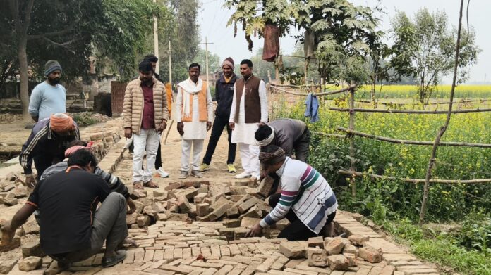 भावी विधायक प्रत्याशी रोहनिया उदय प्रताप प्रधान ने किया महावन हरिजन बस्ती का भ्रमण लोगो ने की खड़ंजा बनवाने की माँग काम शुरू