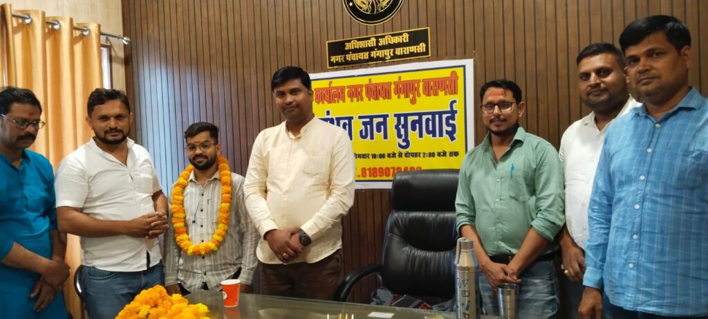वाराणसी/-नगर पंचायत गंगापुर के लिए मनोनीत किए गए नए सभासद कमलेश गुप्ता का उनके कार्यकाल आगमन पर भव्य स्वागत किया गया।इस अवसर पर नगर के पत्रकारों,अधिकारियों और साथी सभासदों ने उन्हें माला पहनाकर और मिठाई खिलाकर शुभकामनाएं दीं।नगर पंचायत कार्यालय पहुँचने पर कमलेश गुप्ता का स्वागत करते हुए अधिशासी अधिकारी (ईओ) नवनीत कुमार जायसवाल ने उन्हें बधाई दी और आशा व्यक्त की कि उनके अनुभव से नगर के विकास कार्यों को नई गति मिलेगी।कार्यक्रम में सभासद अरुण केसरी ने भी माल्यार्पण कर उनका स्वागत किया।इस दौरान क्षेत्र के पत्रकारों ने भी नवागत मनोनीत सभासद का गर्मजोशी से स्वागत किया।पत्रकार साथियों ने फूल-मालाओं के साथ कमलेश गुप्ता का अभिनंदन करते हुए उनके उज्ज्वल भविष्य की कामना की।कमलेश गुप्ता ने सभी का आभार व्यक्त करते हुए कहा कि वे शासन की जनकल्याणकारी योजनाओं को जन-जन तक पहुँचाने और नगर की समस्याओं के समाधान के लिए पूरी निष्ठा से कार्य करेंगे।कार्यक्रम में मुख्य रूप से पत्रकार राहुल सिंह,सौरभ सिंह,रोहित सिंह,अधिशासी अधिकारी नवनीत कुमार जायसवाल,सभासद अरुण केसरी सहित बड़ी संख्या में स्थानीय समर्थक और गणमान्य नागरिक उपस्थित रहे।