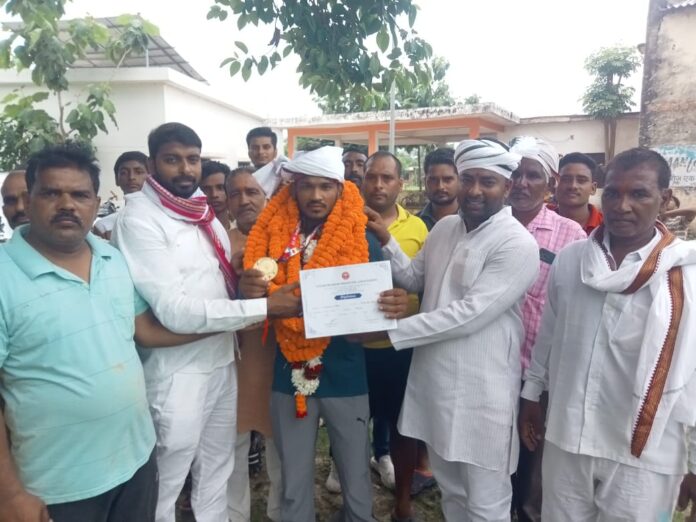 जहां पर जिला पंचायत सदस्य ललित यादव एवं जिला पंचायत सदस्य दर्शन यादव तथा सपा नेता सुधीर यादव द्वारा आयोजित सम्मान समारोह में क्षेत्रीय लोगों ने स्वर्ण पदक विजेता पहलवान सुंदरम यादव को मिठाई खिलाकर एवं माला पहनाकर भव्य स्वागत करते हुए उत्साह वर्धन किया। सुंदरम पहलवान ने सर्वप्रथम अपने पिता दूधनाथ यादव तथा मां रेखा देवी का पैर छूकर आशीर्वाद लिया।