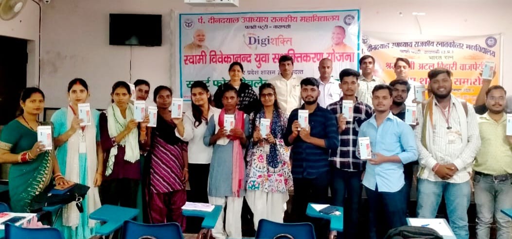 वाराणसी/-उत्तर प्रदेश सरकार के निर्देशानुसार पंडित दीनदयाल उपाध्याय राजकीय महाविद्यालय पलहीपट्टी में स्वामी विवेकानंद युवा सशक्तिकरण योजना के अंतर्गत स्मार्टफोन वितरित किया गया।कार्यक्रम का शुभारंभ महाविद्यालय के प्राचार्य प्रोफेसर अनन्तव्रत पाण्डेय एवं प्रोफेसर सुमन मोहन ने सरस्वती प्रतिमा पर माल्यार्पण एवं दीप प्रज्वलित कर किया।सुमन मोहन ने कहा कि आज के डिजिटल युग में स्मार्टफोन न केवल संचार का माध्यम रह गया है बल्कि यह छात्रों के लिए बहुआयामी उपकरण बन गया है।शिक्षा के क्षेत्र में तकनीकी प्रगति ने स्मार्टफोन को एक अत्यंत उपयोगी साधन के रूप में स्थापित है।प्राचार्य प्रोफेसर अनंतव्रत पांडेय ने कहा कि स्मार्टफोन के माध्यम से छात्र किसी भी समय इंटरनेट के द्वारा विभिन्न विषयों की जानकारी प्राप्त कर सकता है।गूगल,यूट्यूब,शैक्षणिक एप्स अनएकेडमी आदि की सहायता से प्रतियोगी परीक्षा की तैयारी भी कर सकते है।संचालन डॉ अखिलेश कुमार सिंह ने किया।धन्यवाद ज्ञापन डॉ ब्रजेश कुमार ने किया।इस अवसर पर महाविद्यालय के प्राध्यापक डॉ राजेश कुमार विश्वकर्मा,डॉ उपेंद्र सिंह,डॉ अरुंधति रॉय,डॉ रिचा चौधरी,डॉआरजू सिंह,प्रोफेसर सुमन मौर्य,डॉ सुमन सिंह आदि उपस्थित रहे।