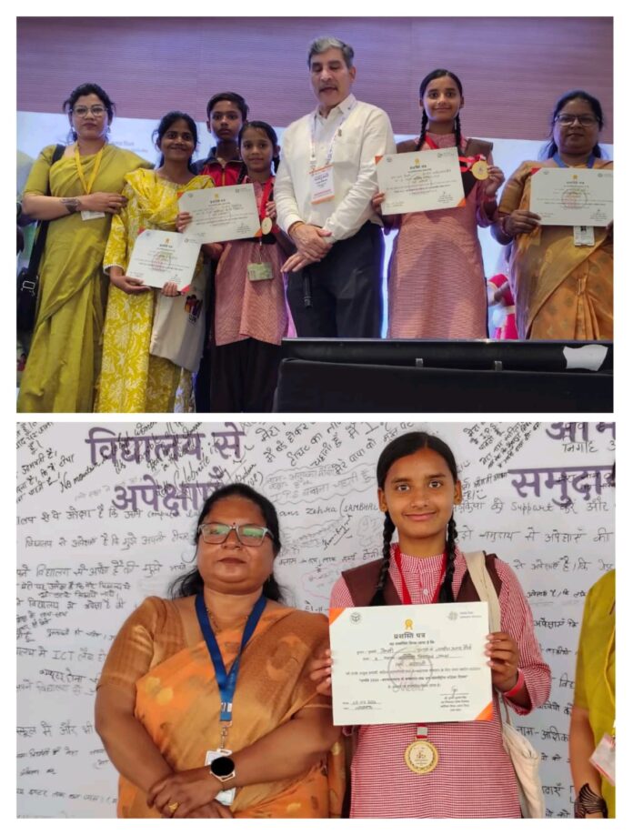 वाराणसी/-कंपोजिट विद्यालय जंसा की होनहार छात्रा नैंसी मौर्या को अंतरराष्ट्रीय महिला दिवस के अवसर पर लखनऊ में प्रगति: आत्मसम्मान कार्यक्रम 2026 में आमंत्रित कर शिक्षा अधिकारियों द्वारा गोल्ड मेडल देकर सम्मानित एवं प्रोत्साहित किया गया।