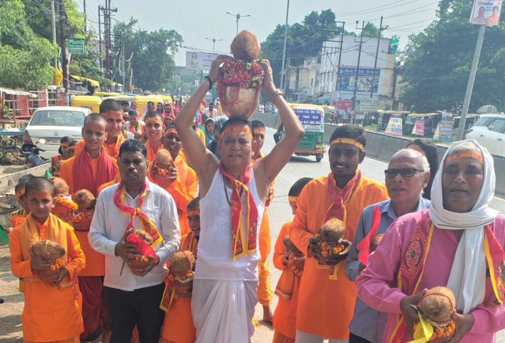 इस बात की जानकारी देते हुए काशी सेवा शोध समिति के राष्ट्रीय सचिव तथा काशी हॉस्पिटल भिखारीपुर के निदेशक डॉक्टर टी पी सिंह ने बताया कि विगत 20 वर्षों से यहां पर शतचंडी महायज्ञ होता आ रहा है।यहां पर 21वें शतचंडी महायज्ञ का आयोजन प्रारंभ हुआ।यज्ञ मंडप प्रवेश से पहले कलश यात्रा निकाली गई।कलश यात्रा भिखारीपुर तिराहे से होते हुए पुनः यज्ञ मंडप में प्रवेश की।कलश यात्रा में बटुक तथा आसपास के स्थानीय महिलाएं पुरुष भारी संख्या में उपस्थित रहे। देवताओं के आह्वान के बाद मंडप प्रवेश वैदिक मंत्रों और विधि विधान के साथ हुआ।