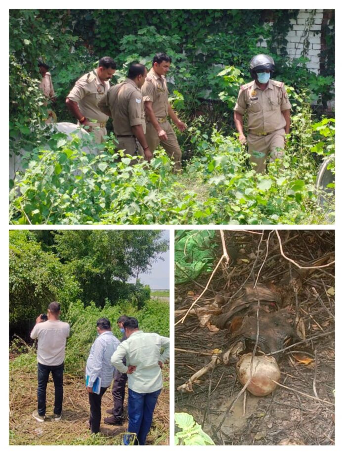 वाराणसी/-रोहनिया थाना क्षेत्र के पंडितपुर स्थित एजीआर मारुति सुजुकी सर्विस सेंटर के पास बुधवार को झाड़ियों में नरकंकाल मिलने से क्षेत्र में सनसनी फैल गयी देखते ही देखते ग्रामीणों की भीड़ जुट गई।ग्रामीणों के सूचना पर पहुँची रोहनिया पुलिस ने नरकंकाल को कब्जे में लेते हुए पीएम को भेज जाँच पड़ताल में जुट गयी।प्राप्त जानकारी के मुताबिक काजू नामक ब्यक्ति ने अपने खेत के साफ सफाई के लिए जेसीबी से रास्ता बनवा रहे थे कि उसी दौरान जेसीबी चालक द्वारा झाड़ी में किसी का शव पड़े होने की सूचना खेत स्वामी को दिया जिसके बाद तत्काल काजू ने घटना की सूचना 11 बजे के लगभग डायल 112 पर दिया करीब एक घण्टे बाद पहुँची पुलिस ने रोहनिया पुलिस को सूचना दी जिसके बाद तत्काल एसीपी रोहनिया संजीव कुमार शर्मा,प्रभारी निरीक्षक रोहनिया राजू सिंह,चौकी प्रभारी मोहनसराय धर्मेन्द्र राजपूत,चौकी प्रभारी भदवर रामकुमार पांडेय,चौकी प्रभारी अखरी विशाल कुमार सिंह सहित फॉरेंसिक टीम मौके पर पहुँच घटना स्थल का निरीक्षण करते हुए नरकंकाल के ऊपर पड़े कम्बल व त्रिपाल को साक्ष्य संकलन के बाबत एकत्रित किया।