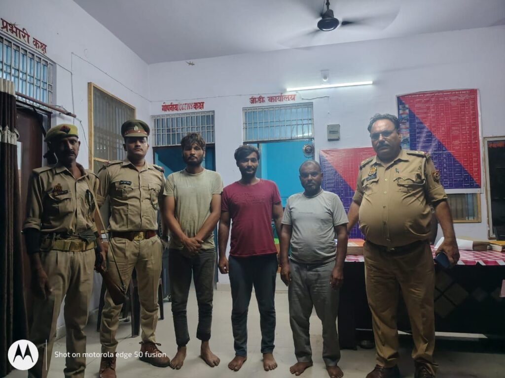 जिसको राजातालाब पुलिस ने राजातालाब ओवरब्रिज पर घेराबंदी करते हुए पकड़ लिया और मौके से चार पशु तस्कर क्रमशः अनवार अली निवासी ग्राम ढकिया थाना डिडोरी जनपद अमरोहा,साहिद निवासी ग्राम ओबरी थाना असमौली जनपद सम्भल अफजल निवासी मीठापुर थाना इचौली जनपद मेरठ व रिजवान निवासी ग्राम बरनावा थाना बिनौली जनपद बागपत को गिरफ्तार करते हुए जेल भेज दिया।राजातालाब पुलिस ने आरोपियों के खिलाफ पशु क्रूरता अधिनियम व 325 बीएनएस व एमबी एक्ट के तहत कंटेनर को सीज की कार्यवाही की।गिरफ्तार करने वाले पुलिस टीम में मुख्य रूप से थानाध्यक्ष राजातालाब राजू कुमार,वरिष्ठ उप निरीक्षक अशोक कुमार तिवारी,उप निरीक्षक चौकी प्रभारी कस्बा राजातालाब रोहित दुबे,उप निरीक्षक चौकी प्रभारी मातलदेई साकेत पटेल,उप निरीक्षक सूरज कुमार चौरसिया,हेड कांस्टेबल संजय शर्मा,कांस्टेबल धर्मेन्द्र कुमार शामिल रहे।