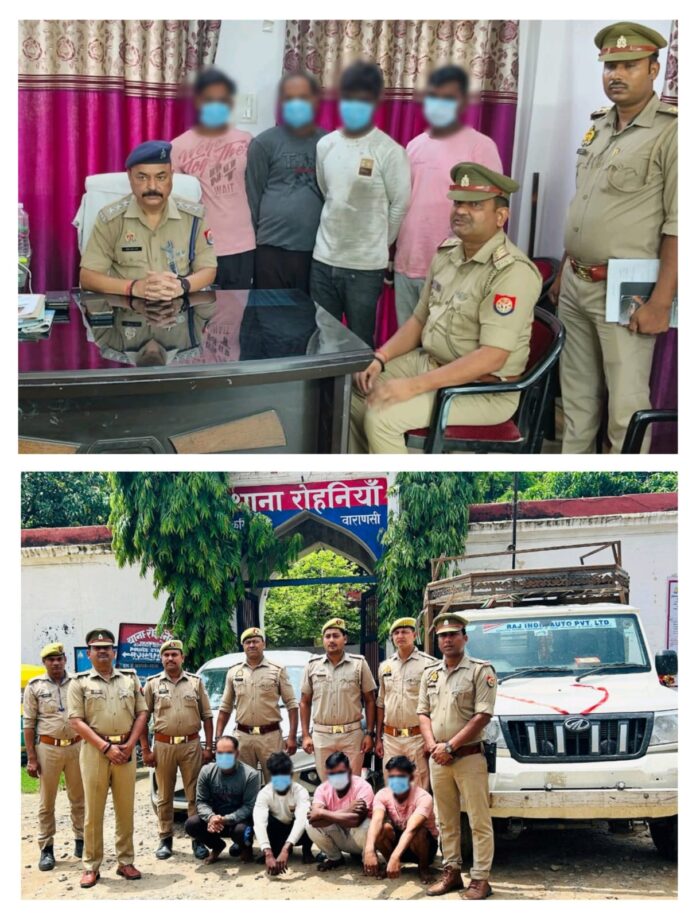 उपरोक्त वाहन के चालक राजन विन्द चक्रपानपुर मिर्जामुराद को गिरफ्तार करते हुए वाहन को आगे का रास्ता दिखाने वाले उसके साथी आदर्श कुमार पासी जनुवाडीह कला फूलपुर प्रयागराज व राजित कुमार पासी मोया हिन्दवानी सरायममरेज प्रयागराज को अर्टिगा गाडी तथा सुनील विन्द अमरा खैरा रोहनिया वाराणसी को अपाचे मोटर साइकिल के साथ गिरफ्तार करते हुए विधिक कार्यवाही के बाद रोहनिया पुलिस ने चारो गौ-तस्करों को जेल भेज दिया।गिरफ्तार व बरामदगी करने वाले पुलिस टीम में मुख्य रूप से प्रभारी निरीक्षक रोहनिया राजू सिंह,चौकी प्रभारी अखरी उप निरीक्षक विकास मौर्या,चौकी प्रभारी मोहनसराय उप निरीक्षक धर्मेन्द्र राजपूत,उप निरीक्षक दिनेश सिंह,हेड कांस्टेबल संतोष कुमार,कांस्टेबल रानू कुमार,कांस्टेबल धनन्जय सिंह,कांस्टेबल रामगोविन्द शामिल रहे।