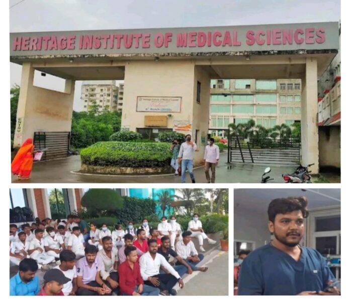 वाराणसी/-वाराणसी के हेरिटेज इंस्टीट्यूट ऑफ मेडिकल साइंसेज में बीएससी नर्सिंग की एक छात्रा ने डॉक्टर विवेक सोनी पर छेड़खानी का आरोप लगाया है। छात्रा के अनुसार ड्यूटी के दौरान डॉक्टर सोनी ने उसके साथ अनुचित व्यवहार किया। घटना के विरोध में छात्रों ने द्वार को बंद करके प्रदर्शन किया जिसके बाद पुलिस ने मामला दर्ज कर लिया है।हेरिटेज इंस्टीट्यूट ऑफ मेडिकल साइंसेज भदवर में बीएससी नर्सिंग तृतीय वर्ष की छात्रा के साथ रात्रि ड्यूटी में छेड़खानी करने वाले आरोपित डाक्टर विवेक सोनी के खिलाफ छेड़खानी का केस दर्ज हुआ है।