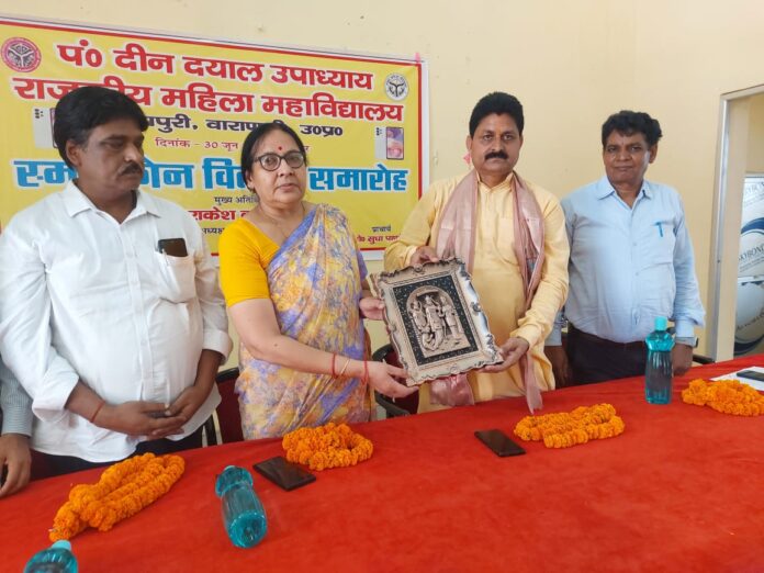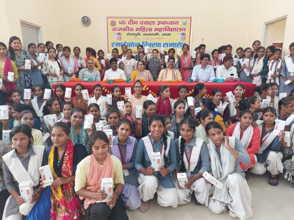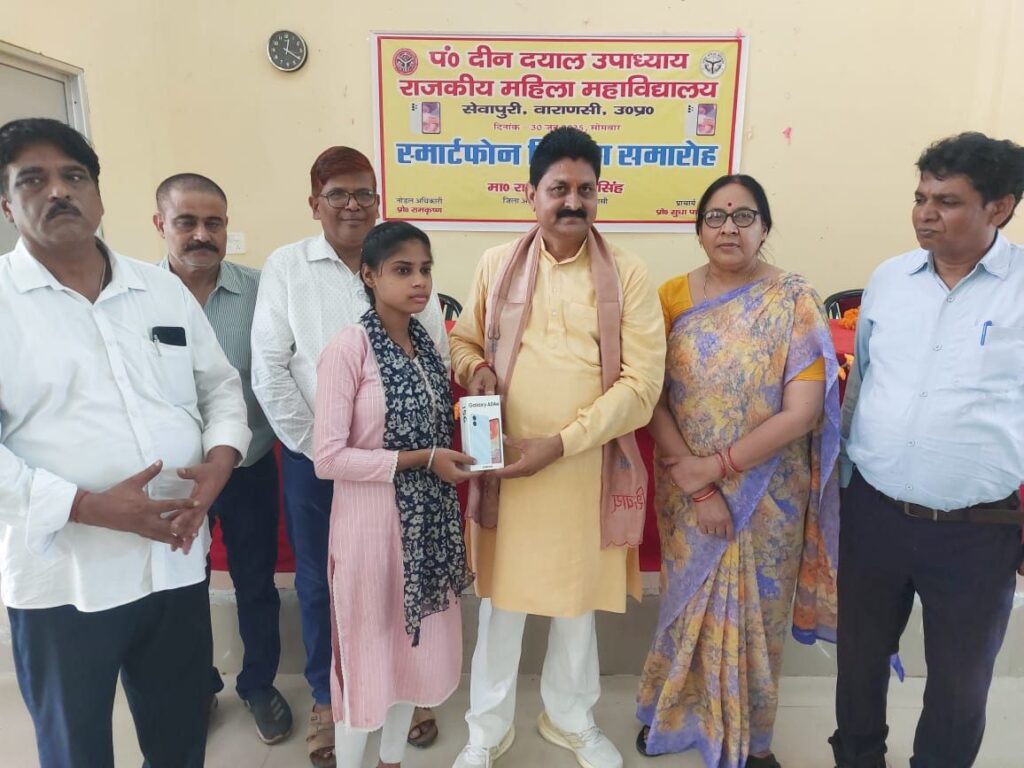 *वाराणसी/-प्रधानमंत्री के संसदीय क्षेत्र वाराणसी में उत्तर प्रदेश के यशस्वी मुख्यमंत्री के मार्गदर्शन में बेटियों के सशक्तिकरण और डिजिटल भारत के सपने को साकार करने की दिशा में एक और ऐतिहासिक कदम उठाया गया।पंडित दीनदयाल उपाध्याय राजकीय बालिका महाविद्यालय सेवापुरी में छात्राओं को स्मार्टफोन वितरित किए गए ताकि वे तकनीकी शिक्षा से सुसज्जित होकर भविष्य की चुनौतियों का सामना कर सकें।कार्यक्रम में मुख्य अतिथि के रूप में जिला अध्यक्ष प्रधान संघ श्री राकेश कुमार सिंह ने छात्राओं को अपने करकमलों से स्मार्टफोन सौंपे।उन्होंने कहा कि यह स्मार्टफोन सिर्फ एक उपकरण नहीं,बल्कि बेटियों के उज्ज्वल भविष्य की मजबूत बुनियाद है।