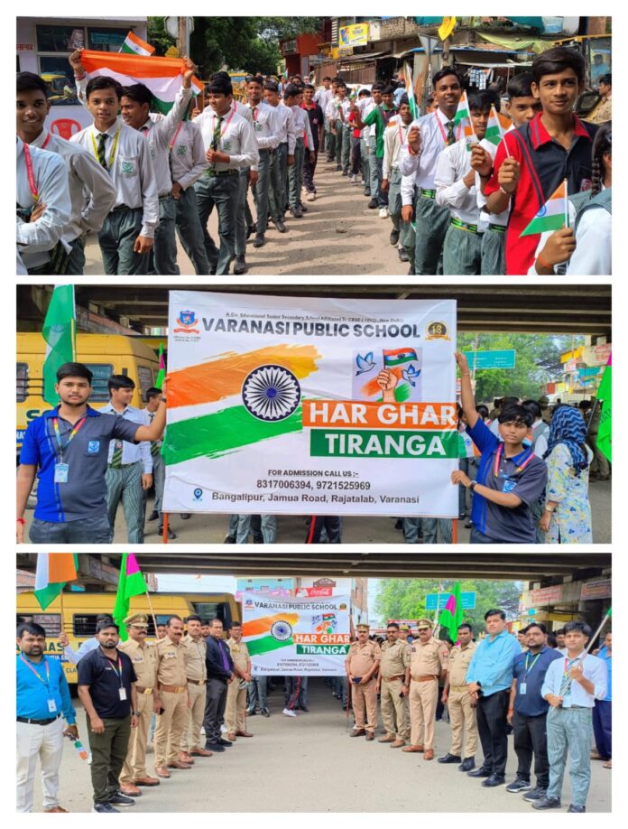 वाराणसी/-वाराणसी पब्लिक स्कूल बंगालीपुर राजातालाब के छात्र-छात्राओं के द्वारा गुरुवार को चार किलो मीटर के परिक्षेत्र में निकाला गया हर घर तिरंगा अभियान यात्रा।स्वतंत्रता दिवस के प्रति लोगो को किया गया जागरूक,तिरंगा यात्रा में राजातालाब पुलिस की रही सराहनीय योगदान।इस अभियान में विद्यालय के उप प्रबधंक श्री शशिकान्त गुप्ता,कोषाध्यक्ष श्री रामानन्द जायसवाल,प्रधानाचार्य श्री आशुतोष सिंह तथा समस्त शैक्षणिक व गैर शैक्षणिक कर्मचारी उपस्थित रहें।