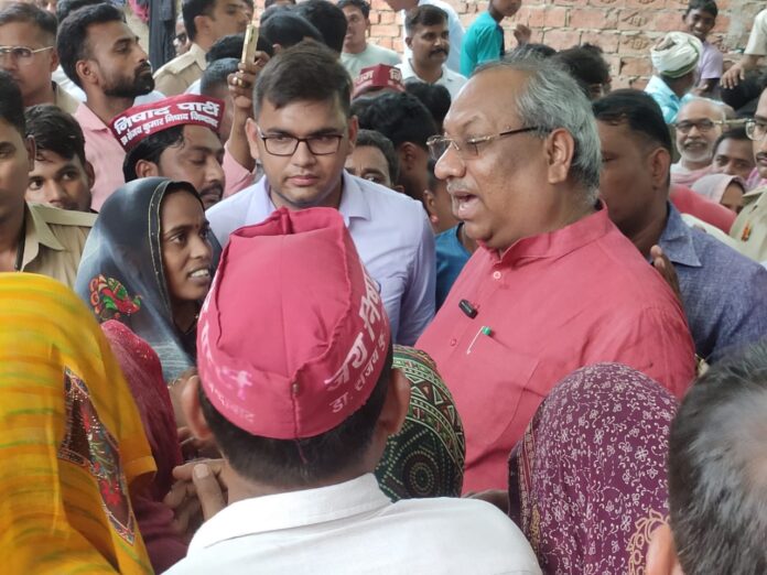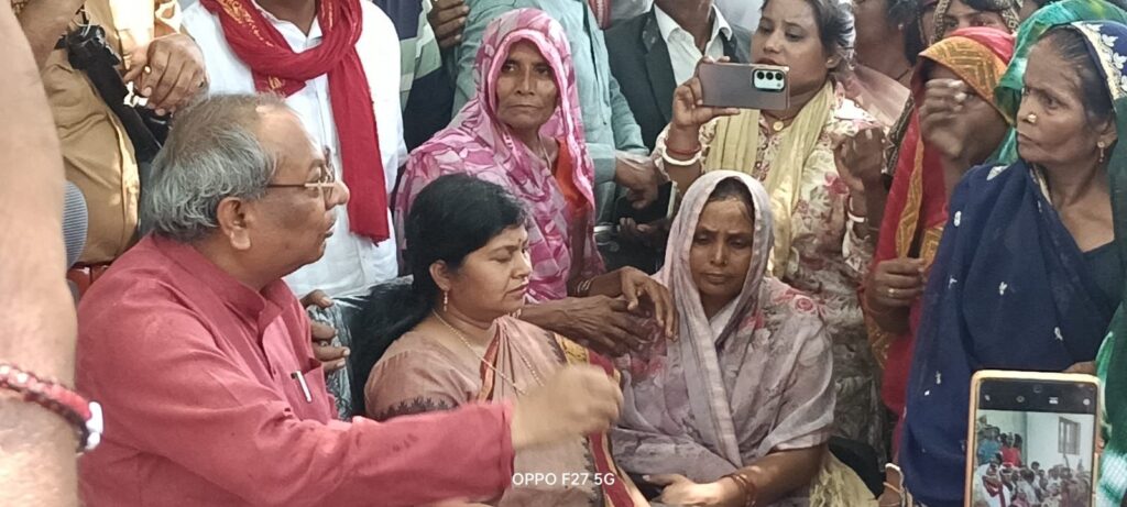राजातालाब/वाराणसी उत्तर प्रदेश सूबे के कैबिनेट मंत्री व निषाद पार्टी के राष्ट्रीय अध्यक्ष डाक्टर संजय कुमार निषाद आज शुक्रवार को वाराणसी जिले के मिर्जामुराद क्षेत्र के मेंहदीगंज गांव में लाव लश्कर के साथ मृतक के घर पहुंचे,जहां मृतक परिवार से मिलकर शोक संवेदना प्रकट कर पीड़ित परिवार सांत्वना दी।