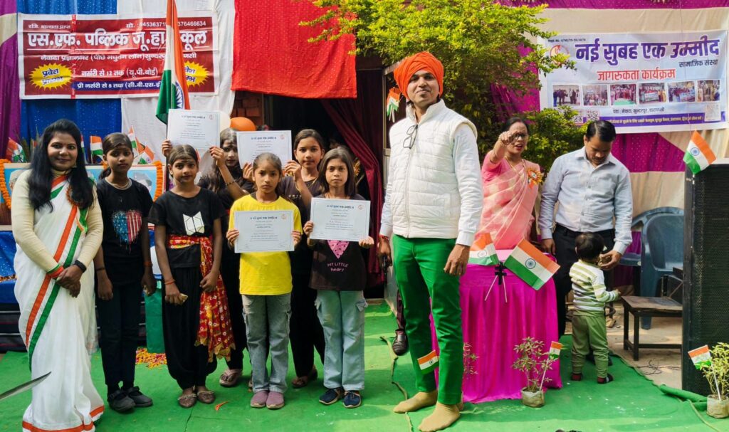 वाराणसी/-गणतंत्र दिवस के शुभ अवसर पर नई सुबह एक उम्मीद सामाजिक संस्था के द्वारा सुंदरपुर में स्थित एसएफ पब्लिक स्कूल के बच्चों के साथ पूरे हर्षोल्लास से गणतंत्र दिवस मनाया गया।