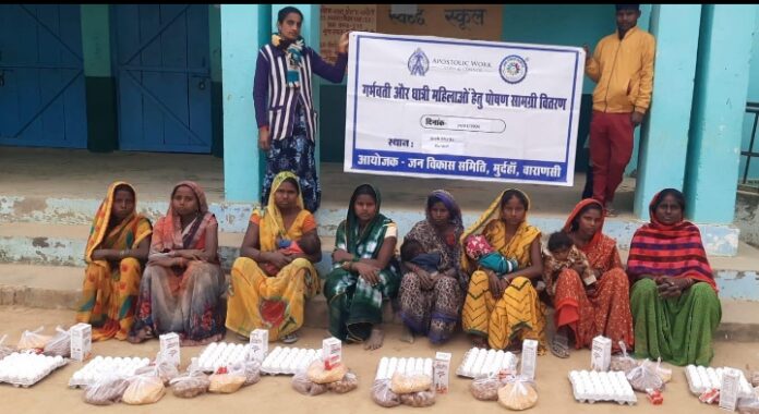 वाराणसी/-सेवा भावना से किया गया परोपकार जीवन मे सुखद एहसास कराता है।इस कार्य मे व्यक्तिगत व संस्थागत सेवा योगदान करने वाला पुण्य का भागी बनता है।हरहुआ ब्लाक क्षेत्र में जन विकास समिति मुर्दहा वाराणसी द्वारा किया जा रहा हर अवसर पर सेवा कार्य सराहनीय जनसेवा का एक मिसाल है।बुधवार को ब्लाक क्षेत्र में 6 भट्ठे पर काम कर रही कुल 41 मजदूर गर्भवती और धात्री महिलाओं को पोषण सामग्री वितरण का कार्य किया गया।जिसमें एक किलो चना,एक किलो दाल,एक किलो गुड,तीस पीस अंडे अल्फा अल्फा सीरप,लाइफ़बॉय साबुन सहित अन्य छोटी जरूरत की सामग्री शामिल रहा।संस्था के निर्देशक चंद्रन रेमंड्स ने कहा कि लोग अपने लिए जीते हैं लेकिन दूसरों के लिए सेवा धर्म निभाकर कार्य करने में बेहद सुकून मिलता है।