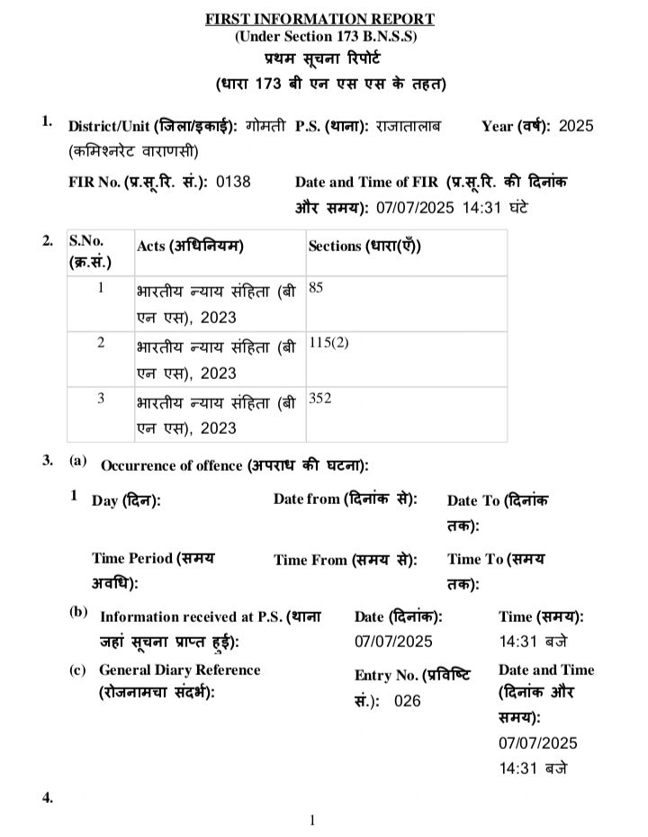 जिसका स्वतः संज्ञान लेते हुए पुलिस आयुक्त वाराणसी ने राजातालाब पुलिस को मुकदमा दर्ज कर कार्यवाही करने का आदेश दिया।