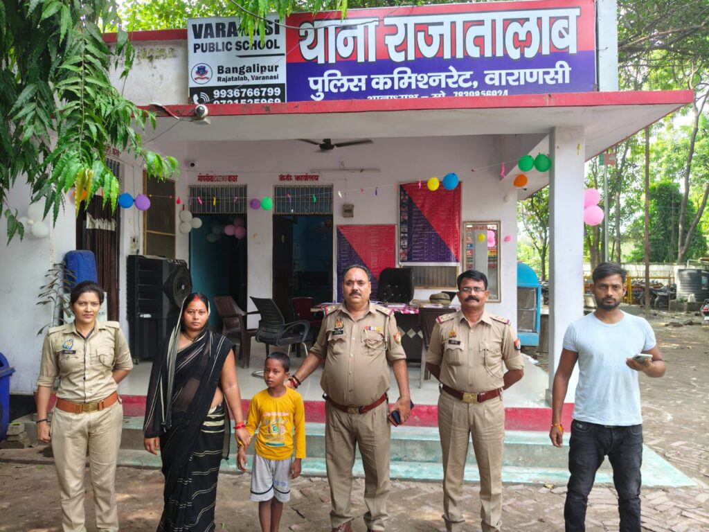 वाराणसी/-राजातालाब थाना क्षेत्र के रानी बाजार की रहने वाली निधि सोनकर पत्नी सोनू सोनकर पुत्री हीरालाल सोनकर का सात वर्षीय पुत्र वंश सोनकर घर के बाहर से खेलते हुए कही गायब हो गया था,पीड़िता व परिजनों ने खोजबीन की लेकिन नही मिलने पर राजातालाब पुलिस को गुमशुदगी के बाबत तहरीर देकर कार्यवाही की माँग की जिसका तत्काल संज्ञान लेते हुए राजातालाब पुलिस ने मासूम वंश को खोजने के लिए जगह जगह क्षेत्र में टीम लगा दी और वंश को सकुशल बरामद करने पर राजातालाब पुलिस ने सफलता प्राप्त करते हुए वंश सोनकर को उनके परिजनों को थाना राजातालाब बुलाकर सुपुर्द कर दिया गया।मासूम वंश को पाकर परिजन काफी प्रसन्न व खुश नजर आए और राजातालाब पुलिस का आभार जताते हुए धन्यवाद ज्ञापित किया।राजातालाब पुलिस द्वारा लगातार किये जा रहे सराहनीय कार्य का क्षेत्र में चर्चा बना हुआ है।बरामदगी करने वाले पुलिस टीम में मुख्य रुप से वरिष्ठ उप निरीक्षक अशोक कुमार तिवारी,उप निरीक्षक अजब सिंह,महिला उप निरीक्षक करिश्मा तिवारी,उप निरीक्षक इमाम हसन,महिला कांस्टेबल शिखा शामिल रही।