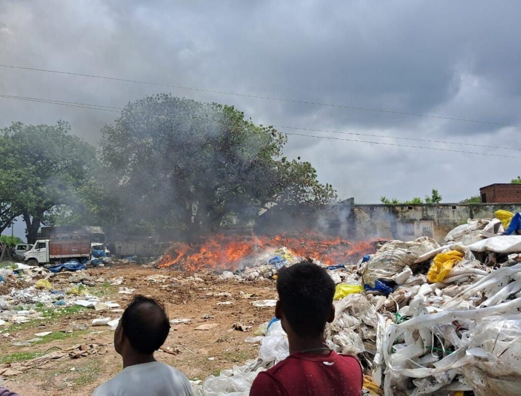 वाराणसी/-राजातालाब थाना क्षेत्र के मातलदेई चौकी अंतर्गत जगरदेवपुर गाँव मे गुरुवार को स्क्रैप भंडार में आग लग गयी जिसकी सूचना मिलते ही चौकी प्रभारी मातलदेई साकेत पटेल उप निरीक्षक राजेश कुमार सिंह तत्काल मौके पर पहुँच दमकल को सूचना देते हुए ग्रामीणों के मदद से आग बुझाने का प्रयास जेसीबी से कूड़ा कबाड़ हटाकर करने लगे जिसके बाद पहुँची दमकल की दो गाड़ियों ने पानी की बौछार से आग पर काबू पाया।वही चौकी प्रभारी मातलदेई साकेत पटेल ने बताया कि बीएलडब्लू से निकलने वाला कूड़ा कबाड़ स्क्रैप आदि अजय कुमार सिंह निवासी जगरदेवपुर द्वारा ग्राम जगरदेवपुर में लाकर डंप किया जाता है।