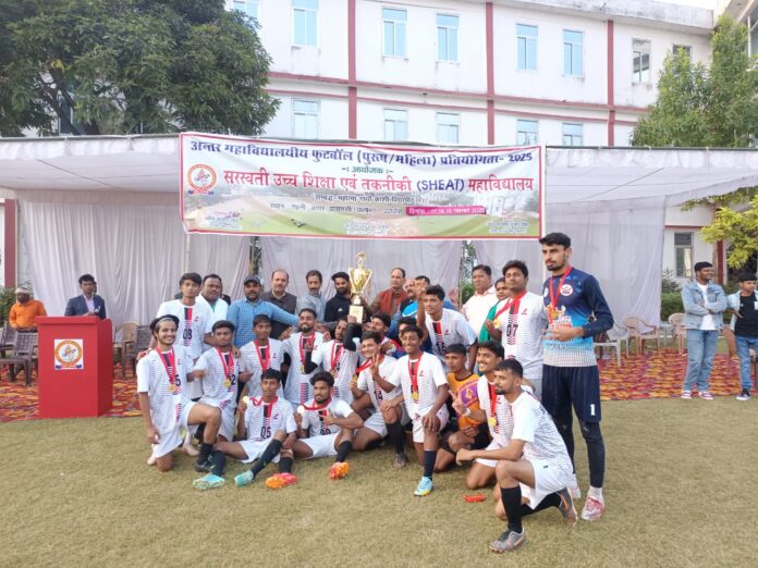 वाराणसी/-सरस्वती उच्च शिक्षा एवं तकनीकी स्नातकोत्तर महाविद्यालय गहनी आयर वाराणसी में महात्मा गांधी काशी विद्यापीठ द्वारा आयोजित अन्तर महाविद्यालयीय फुटबाल प्रतियोगिता (पुरूष) का आयोजन किया गया।उद्घाटन समारोह में पर्यवेक्षक डाॅ मीरा यादव,विश्वविद्यालय प्रतिनिधि डाॅ बीना सिंह,विशिष्ट अतिथि डाॅ अमरेंद्र सिंह,यूपीएससी के सचिव डाॅ सत्येन्द्र बहादुर सिंह,डाॅ दिनेश सिंह और चयनकर्ताओं प्रमोद यादव और वीरेंद्र यादव का स्वागत महाविद्यालय के उप-प्रबन्धक नवीन कुमार सिंह और प्राचार्य डाॅ संतोष कुमार सिंह ने किया।प्रतियोगिता में मेजबान शीएट कॉलेज की टीम के अतिरिक्त महात्मा गांधी काशी विद्यापीठ और महादेव पीजी कॉलेज की टीम ने भाग लिया। नॉक आउट मुकाबले के तहत पहला मैच शीएट कॉलेज और महात्मा गांधी काशी विद्यापीठ के बीच खेला गया,