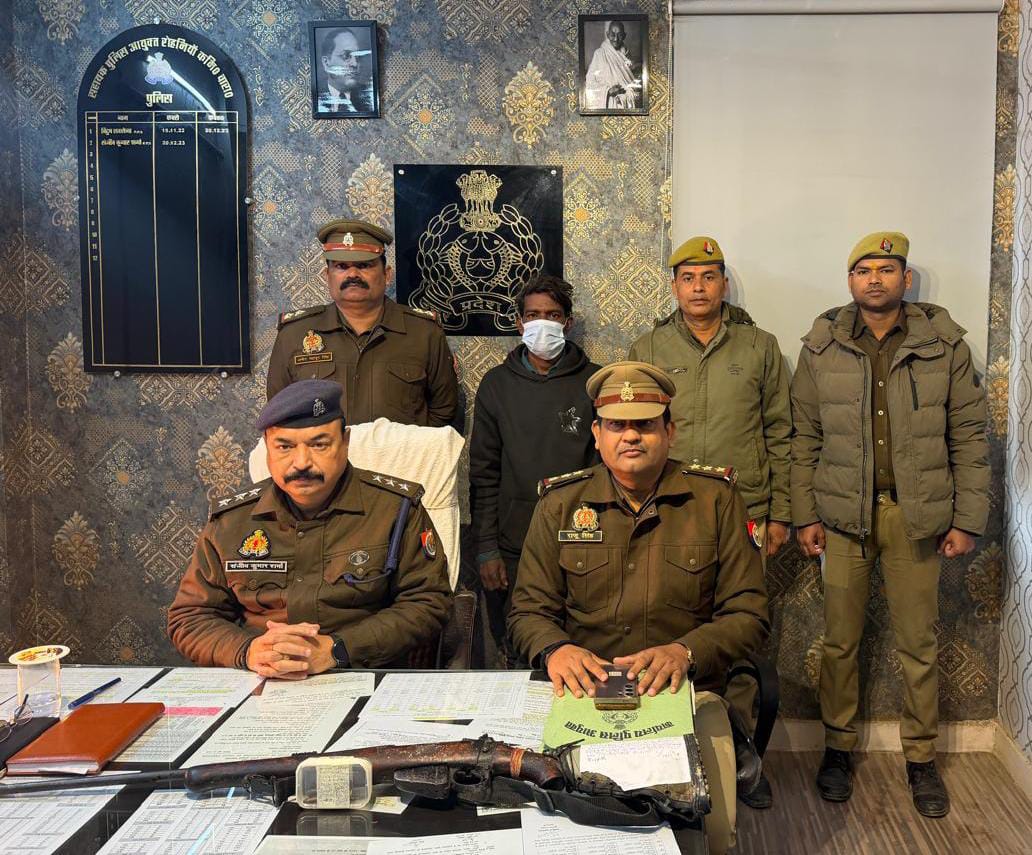 वाराणसी/-ऑपरेशन चक्रव्यूह के तहत मुखबिर की सूचना पर बीते पाँच दिनों पूर्व चोरी के दर्ज मुकदमे का सफल अनावरण करते हुए आरोपी शिव कुमार पटेल पुत्र स्व राम फकीर पटेल निवासी ग्राम नरउर थाना रोहनिया जिला वाराणसी को बाड़ासुर मन्दिर गेट के पास से शनिवार को गिरफ्तार करते हुए उसके निशांदेही पर चोरी की एक रायफल व तीन जिन्दा कारतूस बरामद किया गया उक्त गिरफ्तारी व बरामदगी के आधार पर थाना रोहनिया पुलिस द्वारा अग्रिम विधिक कार्यवाही करते हुए जेल भेज दिया गया।आपको बता दे कि 14 दिसम्बर 2025 को पीड़ित अखिलेश कुमार वर्मा द्वारा थाना रोहनिया पर सूचना दिया गया कि 13 दिसम्बर 2025 को प्रार्थना पत्र दिया गया कि ग्राम जगतपुर स्थित मेरे किराये के मकान से लाईसेन्सी रायफल व बैग एटीएम आधार कार्ड पैन कार्ड चेक बुक व 5000 नकद व जरूरी दस्तावेज व समरसिबल स्टार्टर मिक्सी मशीन तार सहित अज्ञात द्वार चोरी कर लिया गया है।