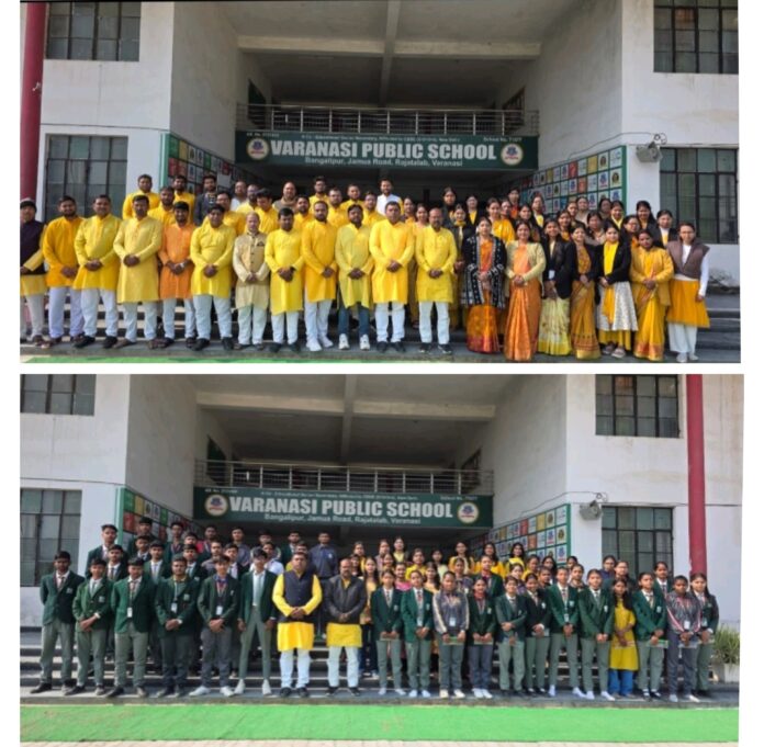 वाराणसी/-प्रधानमंत्री के संसदीय क्षेत्र वाराणसी अंतर्गत बंगालीपुर राजातालाब स्थित वाराणसी पब्लिक स्कूल के प्रांगण में शुक्रवार को बसंत पंचमी के शुभ अवसर पर विद्यादायनी माँ सरस्वती का पूजनोत्सव बड़े ही धूम-धाम से मनाया गया।जिसमें विद्यालय के उप प्रबन्धक शशिकान्त गुप्ता,प्रधानाचार्य आशुतोष सिंह,पीजीटी समन्वयक अभिषेक कुमार दुबे एवं समस्त अध्यापक-अध्यापिकागण,गैर शैक्षणिक कर्मचारी एवं दशवीं कक्षा के सभी विद्यार्थी सम्मिलित थे।विद्यार्थियों को आशीर्वाद प्रदान करते हुए उप प्रबन्धक एवं प्रधानाचार्य जी ने बच्चों के उज्ज्वल भविष्य की कामना की तथा माँ सरस्वती से उनके बोर्ड की परीक्षा ही नहीं अपितु जीवन की सभी परीक्षाओं में सफलता प्राप्त करने की प्रार्थना की।