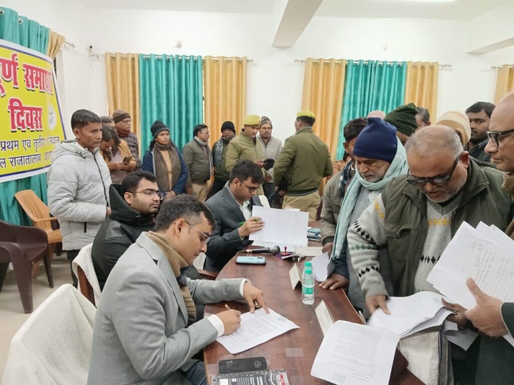 वाराणसी/-राजातालाब तहसील में शनिवार को संपूर्ण समाधान दिवस का आयोजन किया गया।इस दौरान सैकड़ों ग्रामीण अपनी समस्याएं लेकर अधिकारियों के पास पहुंचे।कुल 148 प्रार्थना पत्र प्राप्त हुए,जिनमें सबसे अधिक मामले भूमि विवाद,चक मार्ग और सार्वजनिक भूमि पर कब्जे,बिजली,आपूर्ति व अन्य विभागों से संबंधित रहे।तहसील दिवस के अंतिम चरण में एक फरियादी ने डीएम के सामने जोरदार ढंग से अपनी बात रखी।कनकपुर गांव निवासी देवेंद्र यादव ने खतौनी में हुई त्रुटि को लेकर अधिकारियों पर भ्रष्टाचार के गंभीर आरोप लगाए।उसने कहा कि एसडीएम के आदेश के बावजूद तहसीलदार ने उसके मामले में संतुष्टि नहीं की।देवेंद्र का कहना था कि “मैं दो बार डीएम को आवेदन दे चुका हूं,लेकिन कोई कार्यवाही नहीं हुई।तहसील में भ्रष्टाचार व्याप्त है,खतौनी सुधार या कोई छोटा का भी है तो उसके नाम पर 500-1000 रुपये तक वसूले जाते हैं।अगर न्याय नहीं मिला तो मुख्यमंत्री तक जाऊंगा।”