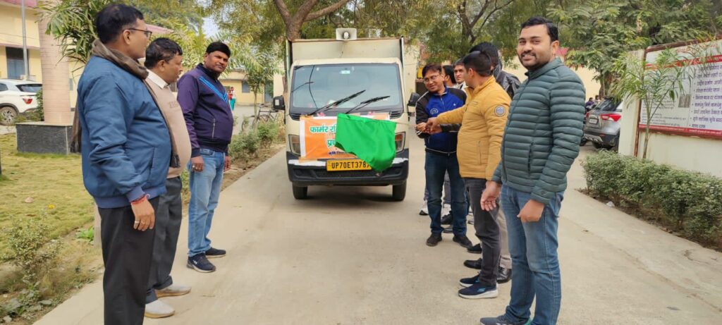 फार्मर रजिस्ट्री प्रचार वाहन को हरहुआ ब्लाक से एडीओ पंचायत रवि सिंह ने हरी झंडी दिखा किया रवाना