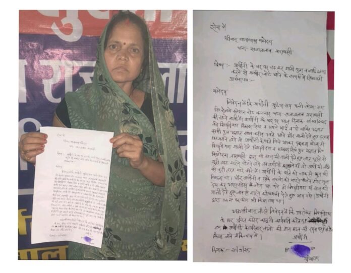 विपक्षीगण व आकाश सिंह पुत्र अज्ञात निवासी सिहोरवा वाराणसी द्वारा माँ बहन की गाली देते हुए लात घूंसो से बुरी तरह मारने पीटने लगे तब पीड़िता बचाने आई तो पीड़िता को लाठी डंडों से बुरी तरह मारे पीटे हैं।पीड़िता के पति को नाक से खून भी निकला था और पीड़िता व उसके बच्चों को मारने पीटने शोर गुल देख कर आस पडोस के लोग आ गये तो विपक्षीगण माँ बहन की गाली देते हुए जान से मारने की धमकी देते हुए भाग गये।पीड़िता द्वारा घटना की सूचना 112 पर फोन कर दी गयी बावजूद पीड़िता के प्रार्थना पत्र पर राजातालाब पुलिस द्वारा कोई कार्यवाही नहीं की गई उल्टा विपक्षियों के प्रार्थना पत्र पर नन्हकू शर्मा,सूरज राय धनिश के खिलाफ मुकदमा दर्ज कर लिया गया जो चर्चा का विषय बना रहा।वही इस बाबत चौकी प्रभारी कस्बा राजातालाब रोहित दूबे व थानाध्यक्ष राजातालाब राजू कुमार का कहना रहा कि एसीपी सर के आदेश के बाद मुकदमा दर्ज किया जायेगा लेकिन वास्तविक पीड़िता के तहरीर पर कोई मुकदमा राजातालाब पुलिस ने नहीं दर्ज किया उल्टा राजातालाब से लगभग 8 किलोमीटर दूर से आए हुए विपक्षियों के प्रार्थना पत्र पर राजातालाब पुलिस ने गंभीरता तथा सक्रियता दिखाते हुए मुकदमा दर्ज कर एक कौतहुल का विषय बना दिया है।