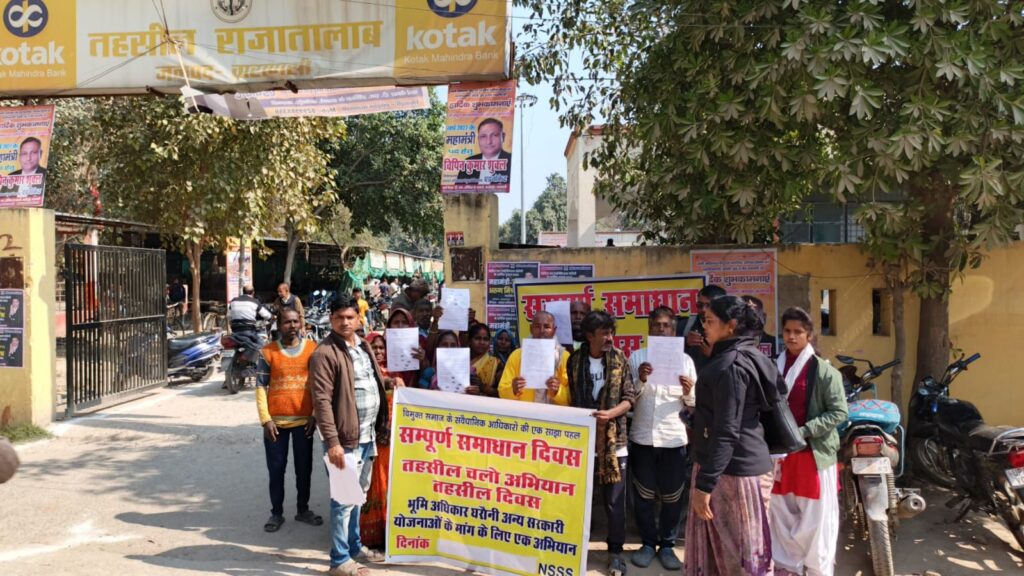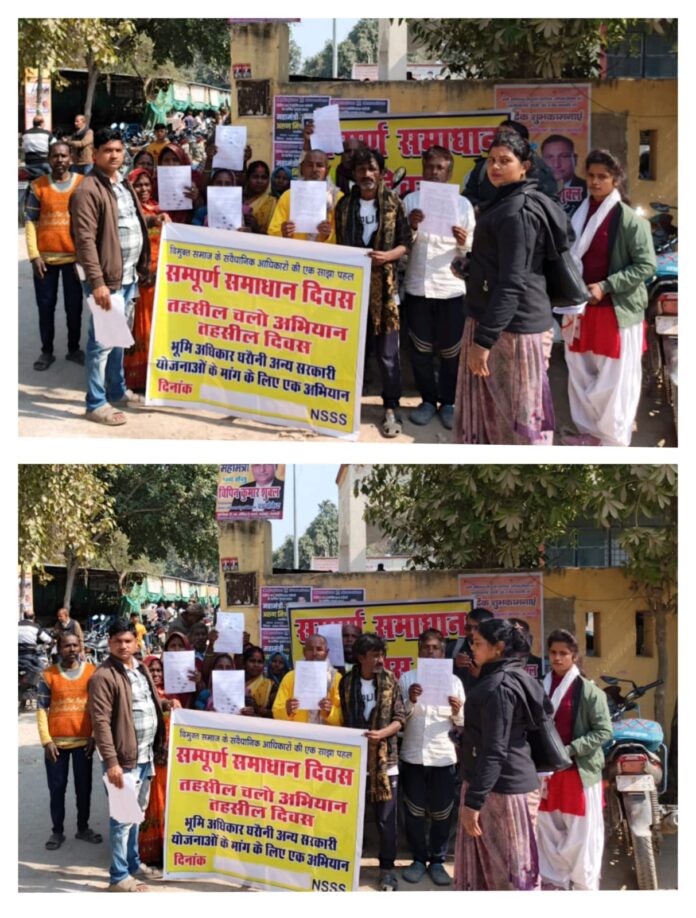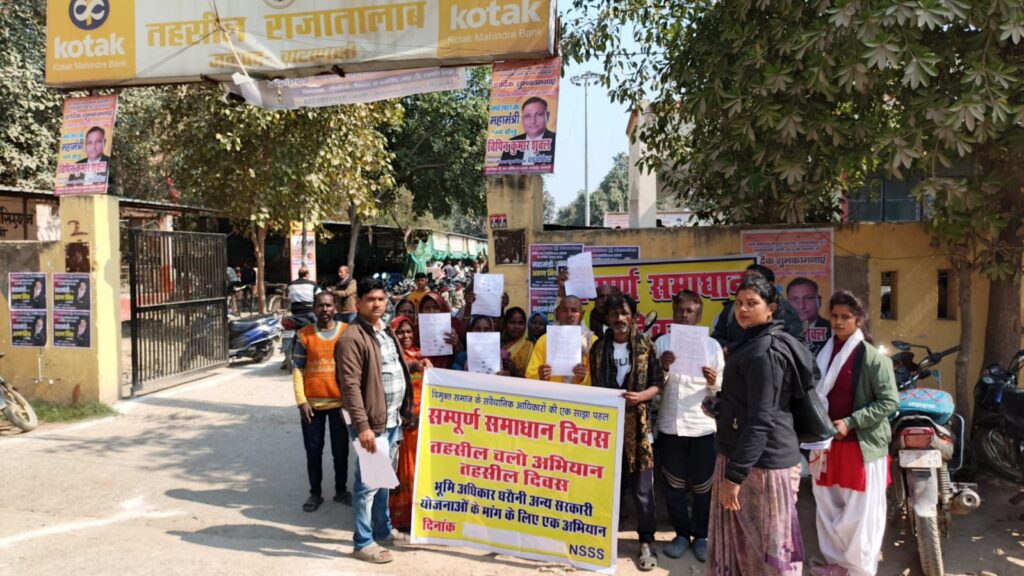 वाराणसी/-राजातालाब तहसील परिसर में शनिवार को आयोजित संपूर्ण समाधान दिवस में डीएनटी समुदाय के लोगों ने अपनी विभिन्न समस्याओं को लेकर एसडीएम को ज्ञापन सौंपा।यह पहल समाज उत्थान सेवा समिति के सहयोग से की गई,जिसमें नहवनीपुर,भाऊपुर और नेवादा ग्राम पंचायतों की नट बस्ती के लोगों ने बढ़-चढ़कर भाग लिया।ज्ञापन के माध्यम से नहवनीपुर और नेवादा ग्राम पंचायत में आवागमन की गंभीर समस्या को उठाते हुए खड़ंजा एवं जमीन की मांग की गई साथ ही जल जीवन मिशन के तहत बिछाई गई पाइपलाइन से नियमित रूप से पानी की आपूर्ति सुनिश्चित कराने की मांग भी प्रमुखता से रखी गई।