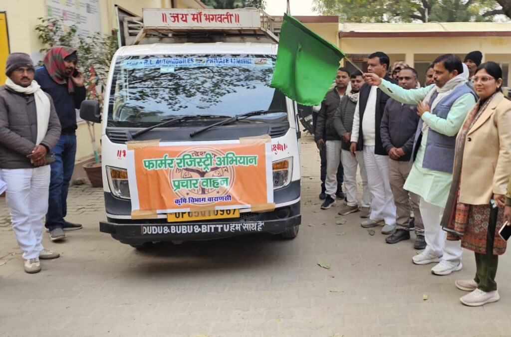डॉक्टर महेंद्र सिंह पटेल ने बताया कि यह प्रचार वाहन आराजी लाइन विकास खंड के सभी ग्राम पंचायतों में किसानों को फार्मर रजिस्ट्री बनवाने हेतु जागरूक करेगा।उप संभागीय कृषि प्रसार अधिकारी निरुपमा सिंह ने बताया कि कृषि विभाग द्वारा यह जागरूकता अभियान बीस जनवरी तक चलाया जाएगा।इस दौरान सहायक विकास अधिकारी कृषि विनय कुमार मिश्रा,प्राविधिक सहायक अमरजीत व राजकुमार उपस्थित रहे।