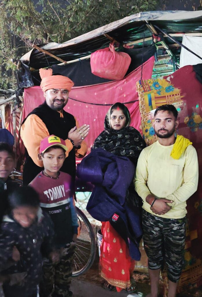 वाराणसी/-प्रधानमंत्री के संसदीय क्षेत्र वाराणसी में कड़ाके की ठंड के बीच मिशन समाज सेवा के राष्ट्रीय अध्यक्ष डंपी तिवारी (बाबा) द्वारा वाराणसी के लमही चांदपुर क्षेत्र की झुग्गी-झोपड़ियों में रहने वाले जरूरतमंद परिवारों को राहत पहुंचाते हुए कंबल वितरण किया गया।मिशन समाज सेवा के राष्ट्रीय अध्यक्ष डंपी तिवारी (बाबा) की ओर से सर्दी से बचाव के लिए सैकड़ो कंबल वितरित किए गए।कार्यक्रम के दौरान मिशन समाज सेवा के सदस्यों ने झुग्गियों में रहने वाले लोगों की वास्तविक परिस्थितियों पर प्रकाश डालते हुए बताया कि कई परिवार ठंड के मौसम में भारी परेशानियों का सामना कर रहे हैं।इसी को देखते हुए यह सेवा कार्य किया गया।वही मीडिया से बातचीत के दौरान मिशन समाज सेवा के राष्ट्रीय अध्यक्ष डंपी तिवारी (बाबा) ने कहा कि समाज के हर वर्ग को साथ लेकर चलना और जरूरतमंदों की सहायता करना ही संस्था का उद्देश्य है जरूरतमंदों के चेहरे पर मुस्कान देखना ही इस सेवा कार्य की सबसे बड़ी प्रेरणा है।
