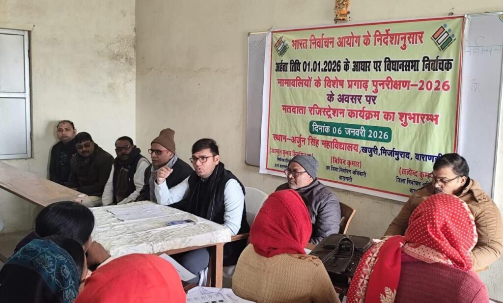 वाराणसी/-अर्जुन सिंह महाविद्यालय खजूरी के प्रांगण में भारत निर्वाचन आयोग के निर्देशानुसार अर्हता तिथि 1जनवरी 2026 के आधार पर विधान सभा निर्वाचक नामावलियों के विशेष प्रगाढ़ पुनरीक्षण 2026 के अवसर पर मतदाता रजिस्ट्रेशन का शुभारंभ किया गया।इस अवसर पर उपजिलाधिकारी राजा तालाब ने उपस्थित राजनैतिक दलों के प्रतिनिधियों से अनुरोध किया कि एसएआर में छुटे हुए लोगों का फॉर्म भरवा कर मतदाता बना डालिए।उपस्थित छात्र-छात्राओं से अनुरोध किया की जिनका उम्र 1जनवरी 2026 को 18 वर्ष हो चुका है वह सभी लोग फार्म 6 भर कर मतदाता बन जाए।समाजवादी पार्टी के वरिष्ठ जिला उपाध्यक्ष कन्हैया लाल राजभर ने बताया कि विधानसभा क्षेत्र सेवापुरी का मतदाता सूची हर बूथ पर पहुंच गया है गांव के लोग मतदाता सूची को देख ले अगर किसी का नाम किसी कारण बस छूट गया है तो छुटे हुए लोगों से तथा 1 जनवरी 2026 को जिनका उम्र 18 वर्ष हो गया है अनुरोध किया कि वह मतदाता बन जाए।बैठक में मुख्य रूप से समस्त राजनीतिक दलों के प्रतिनिधि गण शालिनी सिंह तहसीलदार राजातालाब,नायब तहसीलदार सीडीपीओ आराजीलाइन,विधानसभा क्षेत्र सेवापुरी के बी एल ओ,राजनीतिक दलों के बी एल ए तथा समस्त सुपरवाइजर गण उपस्थित थे।