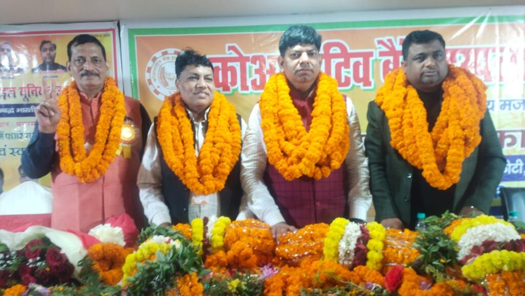 वाराणसी/-कोआपरेटिव बैक इम्पलाइज युनियन उoप्रo का दो दिवसीय प्रान्तीय अधिवेशन प्रताप पैलेस परेड कोठी कैण्ट वाराणसी मे रविवार को प्रान्तीय कमेटी के चुनाव के साथ सम्पन्न हुआ।कोआपरेटिव बैक इम्पलाइज युनियन उत्तर प्रदेश के चुनाव मे सर्व सम्मति से अजय बर्मन सहारनपुर अध्यक्ष, शेषनाथ यादव व योगेन्द्र सिंह पीलीभीत उपाध्यक्ष, सुधीर सिंह महामंत्री, नागेन्द्र कुमार सिंह मेरठ उपमंत्री, नायब सिंह वाराणसी, धर्मेन्द्र तिवारी रायबरेली, अरविन्द कुमार सिंह हरदोई, सहायक महामंत्री।ईश्वर सिंह चौहान मुजफ्फरनगर संगठन मंत्री, अरविन्द कुमार अयोध्या