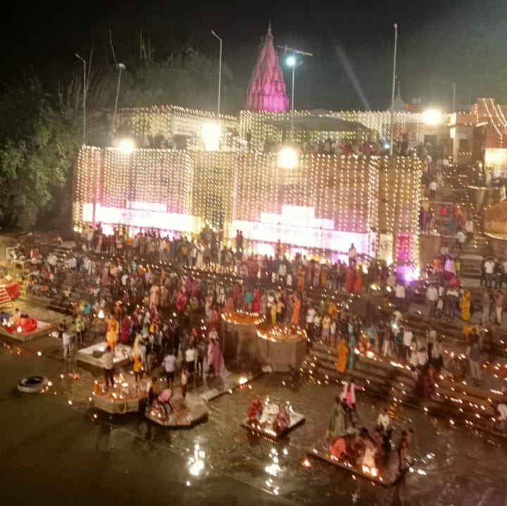 वाराणसी/-पंचक्रोशी मार्ग पर स्थित रामेश्वर वरुणा घाट पर बुधवार को गोधूलि बेला में हजारों दीपों से जगमगा उठा।पीठाधीश्वर आचार्य पंडित अनूप त्रिपाठी के नेतृत्व में 21 वेद बाल ब्राह्मणों व् आचार्यो द्वारा मन्त्रोच्चार व् शंख,घड़ी -घण्ट व डमरू नगाड़ा ध्वनि सहित वरुणा की जय-जयकार से पूरा क्षेत्र भक्तिमय हो गया।पुल व बारजा पर दर्शकों की भीड़ एक पल देखने को उमड़ पडी।नव युवा समिति रामेश्वर के युवा ‘माँ वरुणा भक्त’ घाट पर दीपों को जलाकर वरुणा की आरती व् दीपदान किया।हजारों दीपों की मद्धिम रोशनी वरुणा नदी में उभरता नयनाभिराम दृश्य जैसे लग रहा था कि जमीं पर सितारे उतर आये हो।
