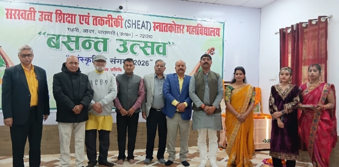 वाराणसी/-सरस्वती उच्च शिक्षा एवं तकनीकी स्नातकोत्तर महाविद्यालय गहनी आयर वाराणसी के बहुउद्देशीय सभागार मे नेताजी सुभाषचन्द्र बोस की जयंती और बसंत पंचमी के अवसर पर सांस्कृतिक संगम 2026 का आयोजन किया गया।प्रथम चरण में सरस्वती पूजन का आयोजन किया गया जिसमें महाविद्यालय के उप-प्रबंधक नवीन कुमार सिंह और प्राचार्य डॉ सन्तोष कुमार सिंह समस्त प्राध्यापक प्राध्यापिकाओं सहित महाविद्यालय की छात्र व छात्राओं ने पूजन-अर्चन किया और विश्व कल्याण की कामना की।द्वितीय चरण में सुभाष चन्द्र बोस की जयंती और सांस्कृतिक कार्यक्रम का आयोजन किया गया जिसमें मुख्य अतिथि के रूप में प्रसिद्ध साहित्यकार समीक्षक,आलोचक डॉ रामसुधार सिंह उपस्थित रहे।विशिष्ट अतिथि के रूप में मेजर डॉक्टर अरविन्द कुमार सिंह,डॉक्टर राजीव शुक्ल,डॉक्टर अजीत कुमार एन शुक्ल,श्रीमती माला सिंह,डाॅ एस के उपाध्याय उपस्थित रहे।कार्यक्रम के प्रारम्भ में सुभाष चन्द्र बोस के चित्र पर माल्यार्पण कर नवीन कुमार सिंह और डाॅ संतोष कुमार सिंह ने अतिथियों का स्वागत पुष्प गुच्छ,अंगवस्त्र और स्मृति चिह्न प्रदान कर किया।अपने संबोधन में मुख्य अतिथि ने कहा कि सरस्वती पूजा और नेताजी की जयंती एक ही दिन पड़ना केवल संयोग न समझा जाए।भारत आज वैश्विक चुनौतियों के समक्ष जहां खड़ा है हमारे युवा पीढ़ी को माँ सरस्वती की तरह विद्या में ज्ञान में शोध में आगे बढ़ना है और इसी के साथ साथ हमें सुभाष चंद्र बोस को याद करते हुए अपनी सीमाओं की रक्षा करनी है और चारों तरफ से शत्रुओं से घिरे अपने इस राष्ट्र को बचाना है।महाविद्यालय की छात्र/छात्राओं संध्या पटेल,तृप्ति,सोनाली,सृष्टि,मनीषा,अर्चना आदि ने सरस्वती वंदना,स्वागत गीत,समूह नृत्य,नाट्य मंचन,आदिवासी,नारी अस्मिता से जुड़ी प्रस्तुति किया।कार्यक्रम का संचालन डाॅ सुरभि श्रीवास्तव,अदिति सिंह,शुभम खरवार ने किया और डाॅ पुष्पा मिश्रा ने धन्यवाद ज्ञापित किया।इस अवसर पर महाविद्यालय के समस्त प्राध्यापक,प्राध्यापिकाओं सहित छात्र,छात्राओं ने उपस्थित होकर मंगल की कामना की।