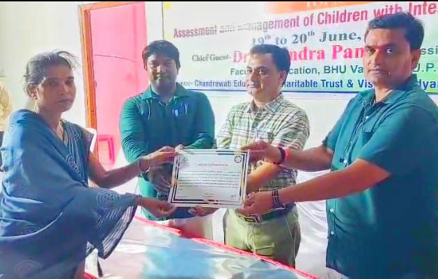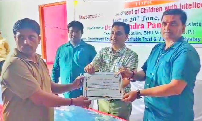वाराणसी/-आराजी लाइन विकासखंड क्षेत्र के हरसोस स्थित चन्द्रावती एजुकेशनल चैरिटेबल ट्रस्ट एवं विशेष विद्यालय के सभागार में प्रबंध निदेशक अरविंद सिंह की देखरेख में आयोजित दो दिवसीय प्रशिक्षण के दौरान 150 विशेष शिक्षको,प्रशिक्षको एवं विषय विशेषज्ञों को सीआरई प्रोग्राम का प्रशिक्षण दिया गया।जिसका उद्घाटन मुख्य अतिथि प्रोफेसर राघवेन्द नारायण शर्मा शिक्षा संकाय बीएचयू ने माँ सरस्वती के प्रतिमा पर माल्यार्पण एवं दीप प्रज्जवल कर किया। उसके उपरांत मुख्य अतिथि प्रोफेसर राधवेन्द्र नारायण शर्मा व मुकेश नारायण तथा सीआरई प्रोग्राम के कोआर्डिनेटर रमेश सिंह द्वारा लेक्चर दिया गया।