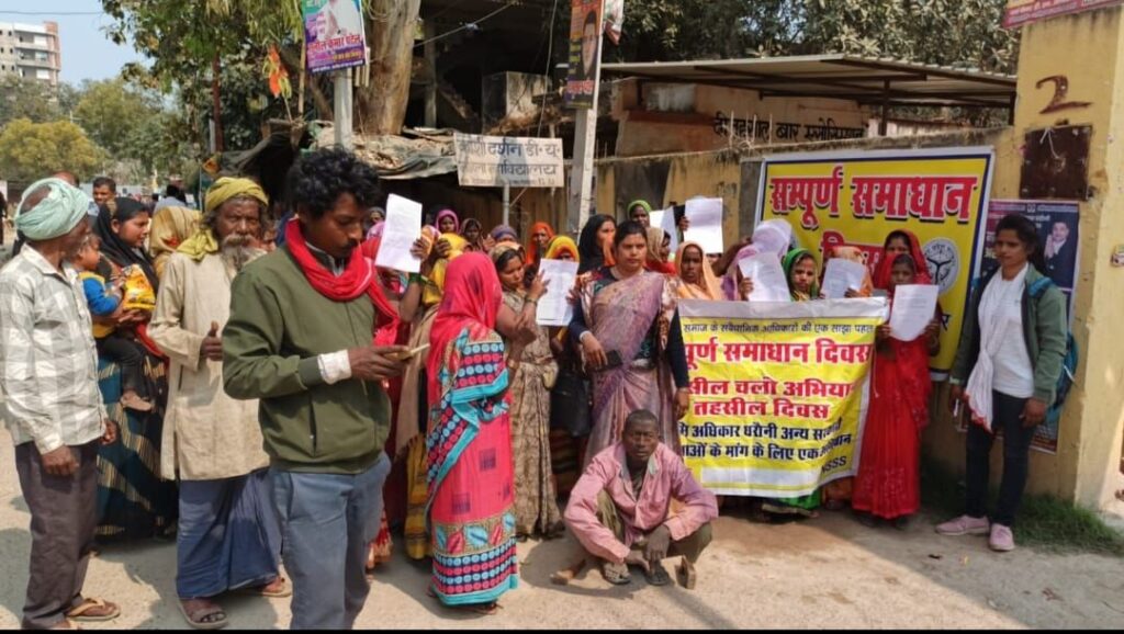 वाराणसी/-समाज उत्थान सेवा समिति के सहयोग से ग्राम पंचायत तिवारीपुर बरनी और पचवार के डीएनटी समुदाय (बनवासी बस्ती) की महिलाओं ने शनिवार को उप जिलाधिकारी राजातालाब का घेराव कर ज्ञापन दिया।जिसमें उल्लेख है कि दोनों ग्राम पंचायतों में किसी को घरौनी प्रमाण पत्र नहीं मिला है और पेयजल परियोजना के तहत बस्ती में पाइप लाइन की सप्लाई तो दिया गया लेकिन पानी की सप्लाई नहीं चालू किया गया है।
